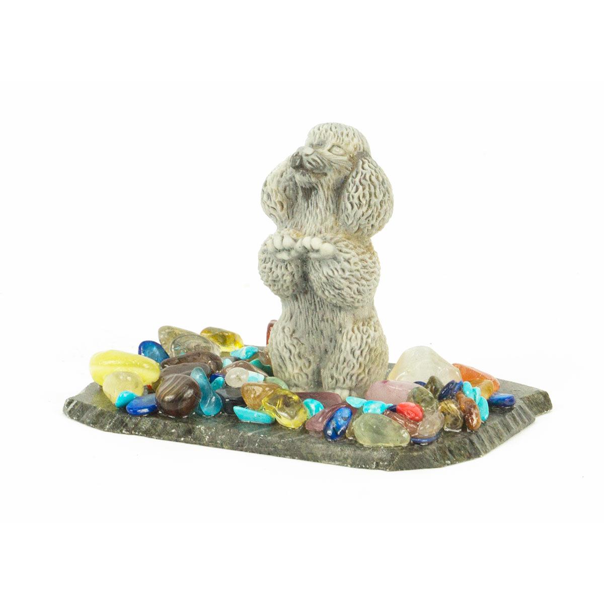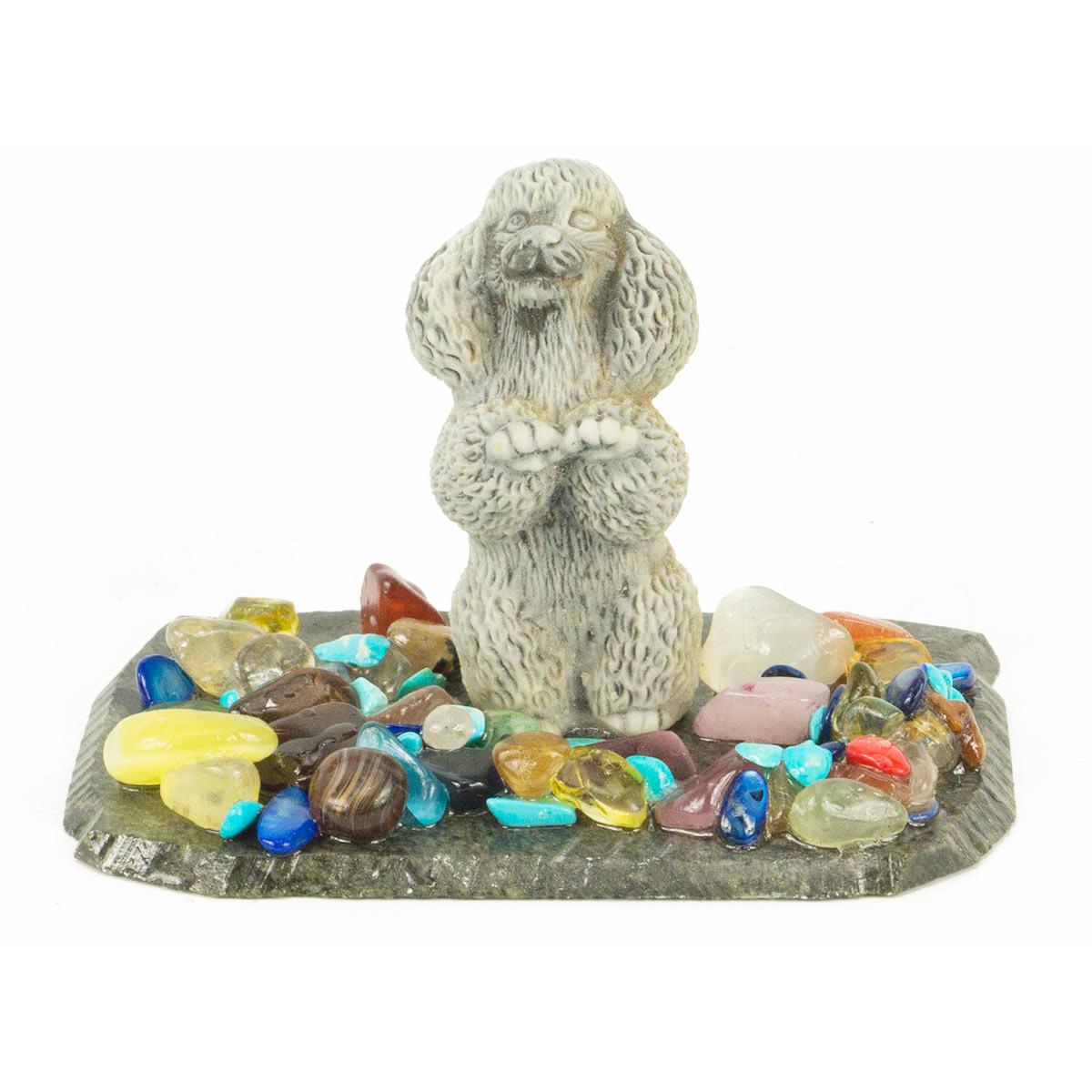 Сувенир "пудель" змеевик мрамолит самоцветы 80х60х75 мм 150 гр.
