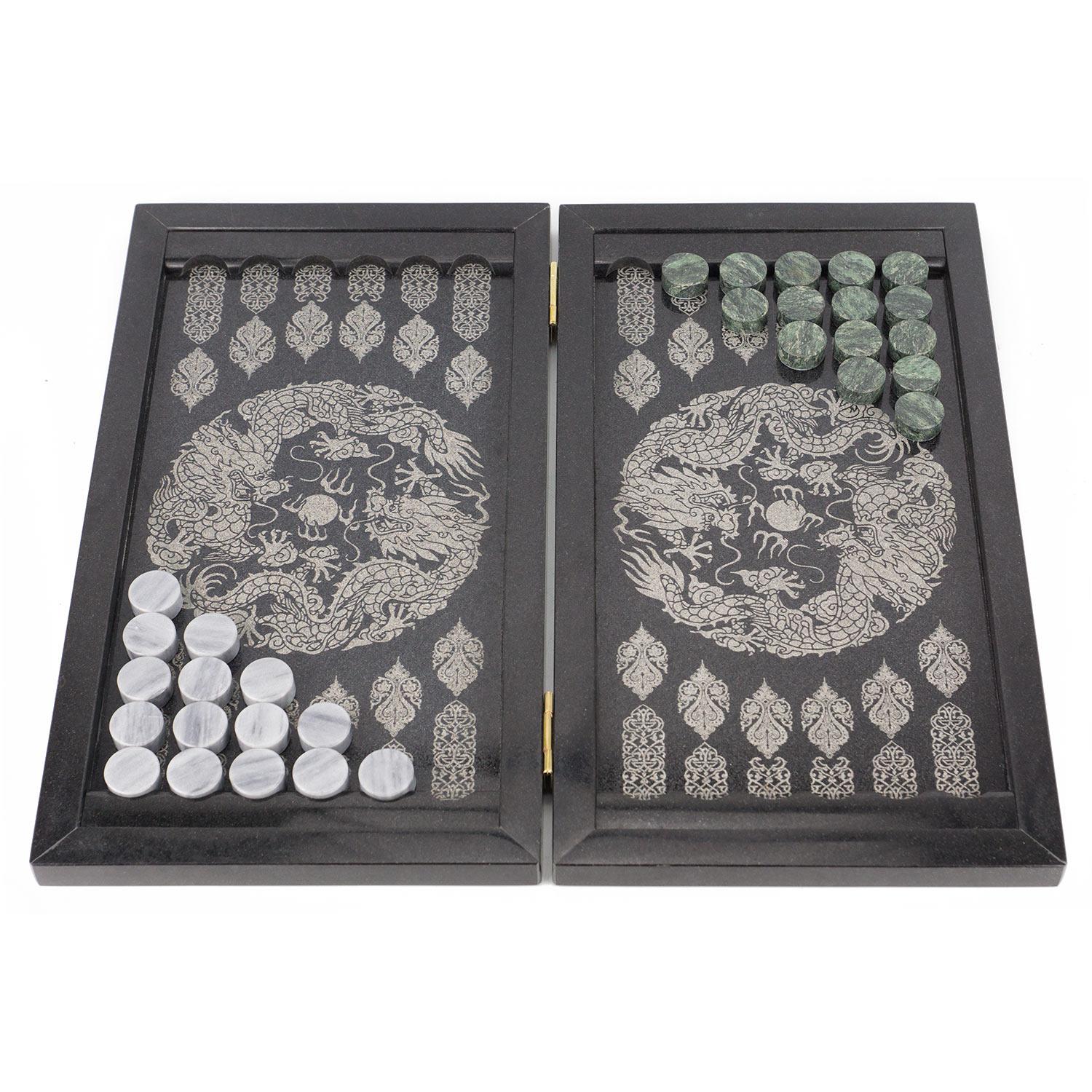 Нарды "дракон" змеевик, мрамор 480х430х20 мм 9600 гр.