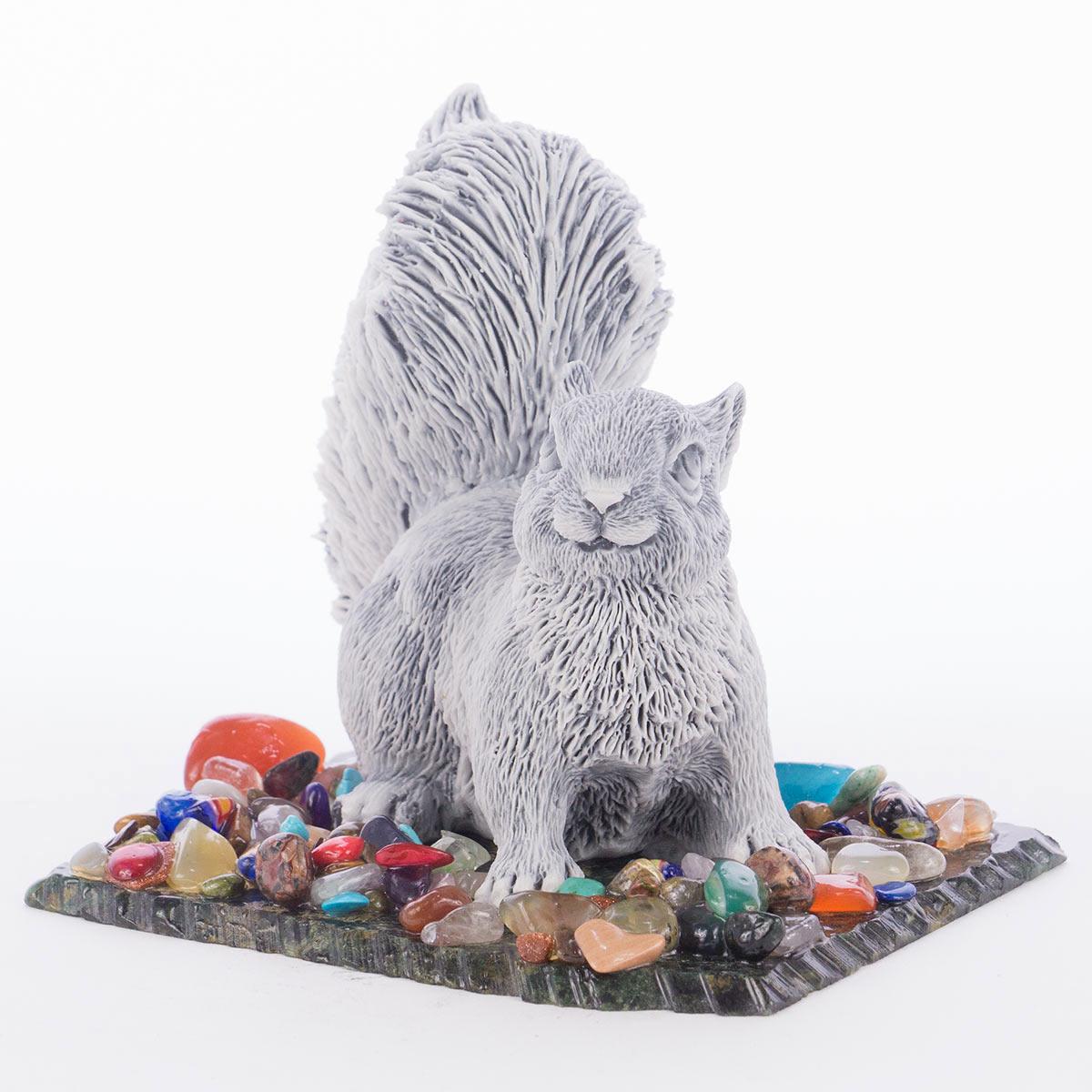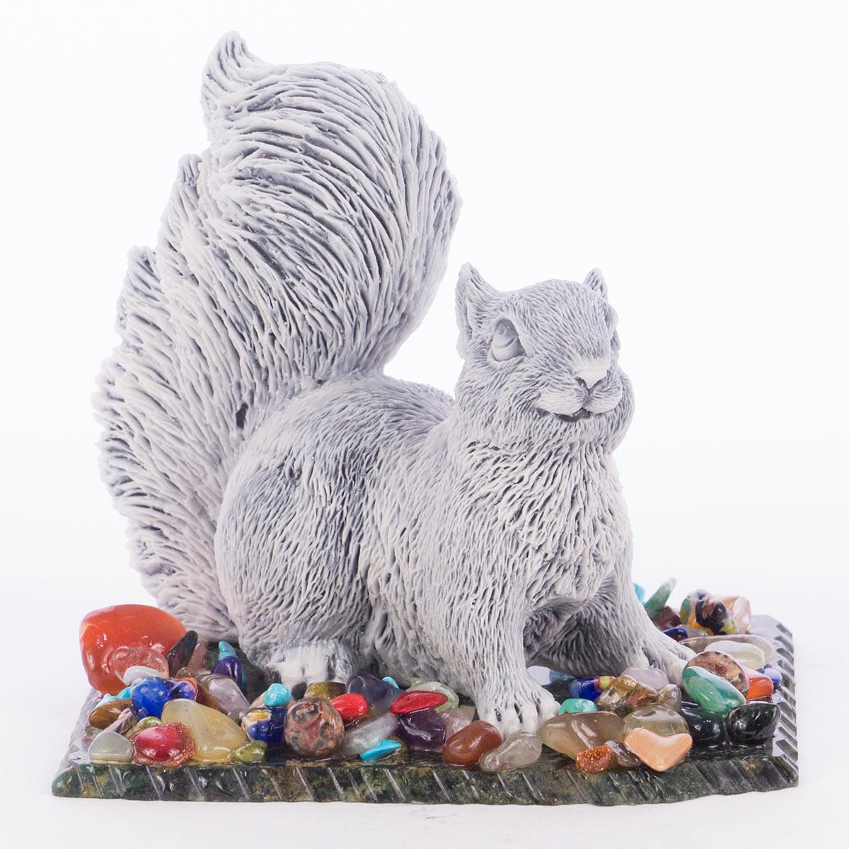 Сувенир "белка №2" змеевик мрамолит самоцветы 100х80х90 мм 340 г