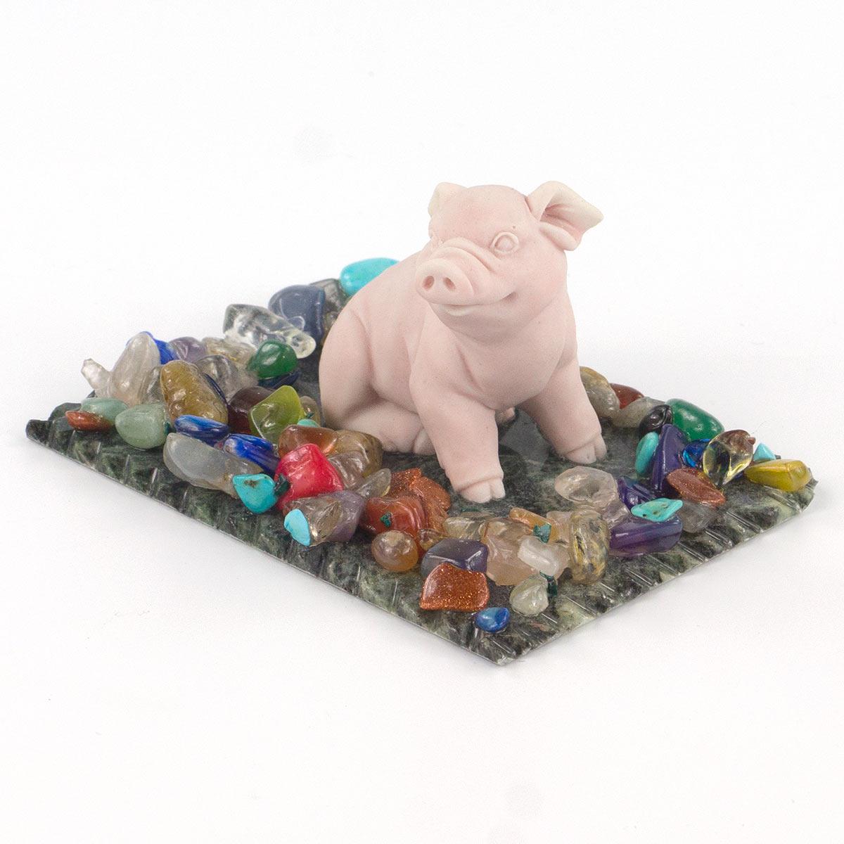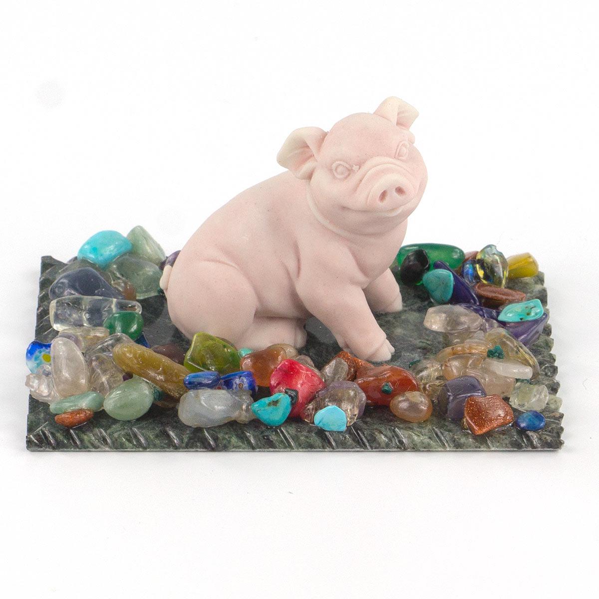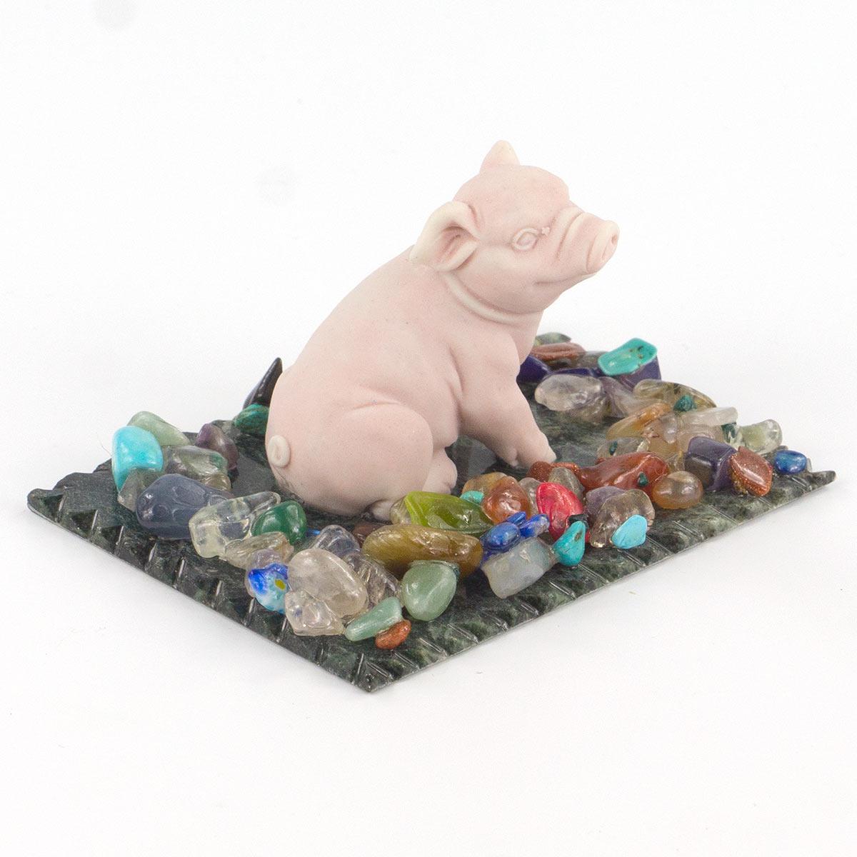 Сувенир "поросенок сидит" змеевик мрамолит самоцветы 80х60х40 мм