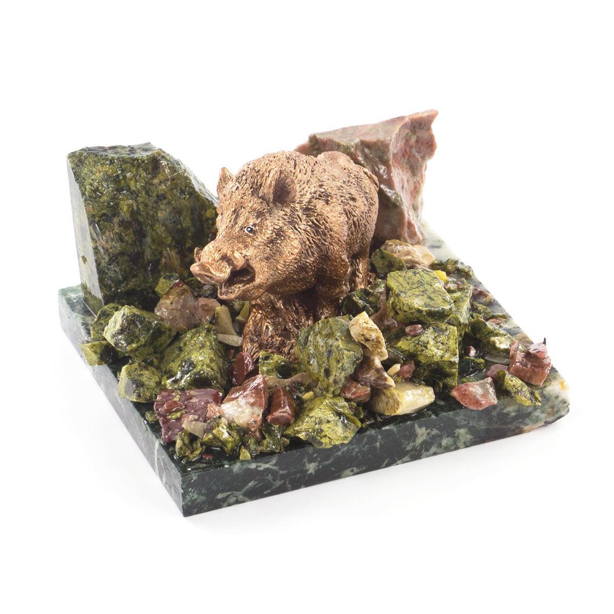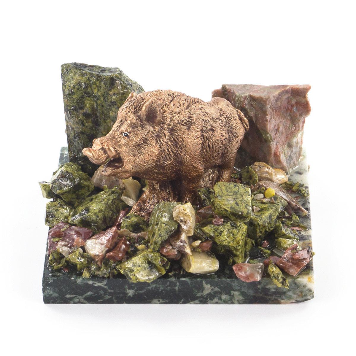 Сувенир "кабан" змеевик самоцветы 100х95х70 мм 540 гр.