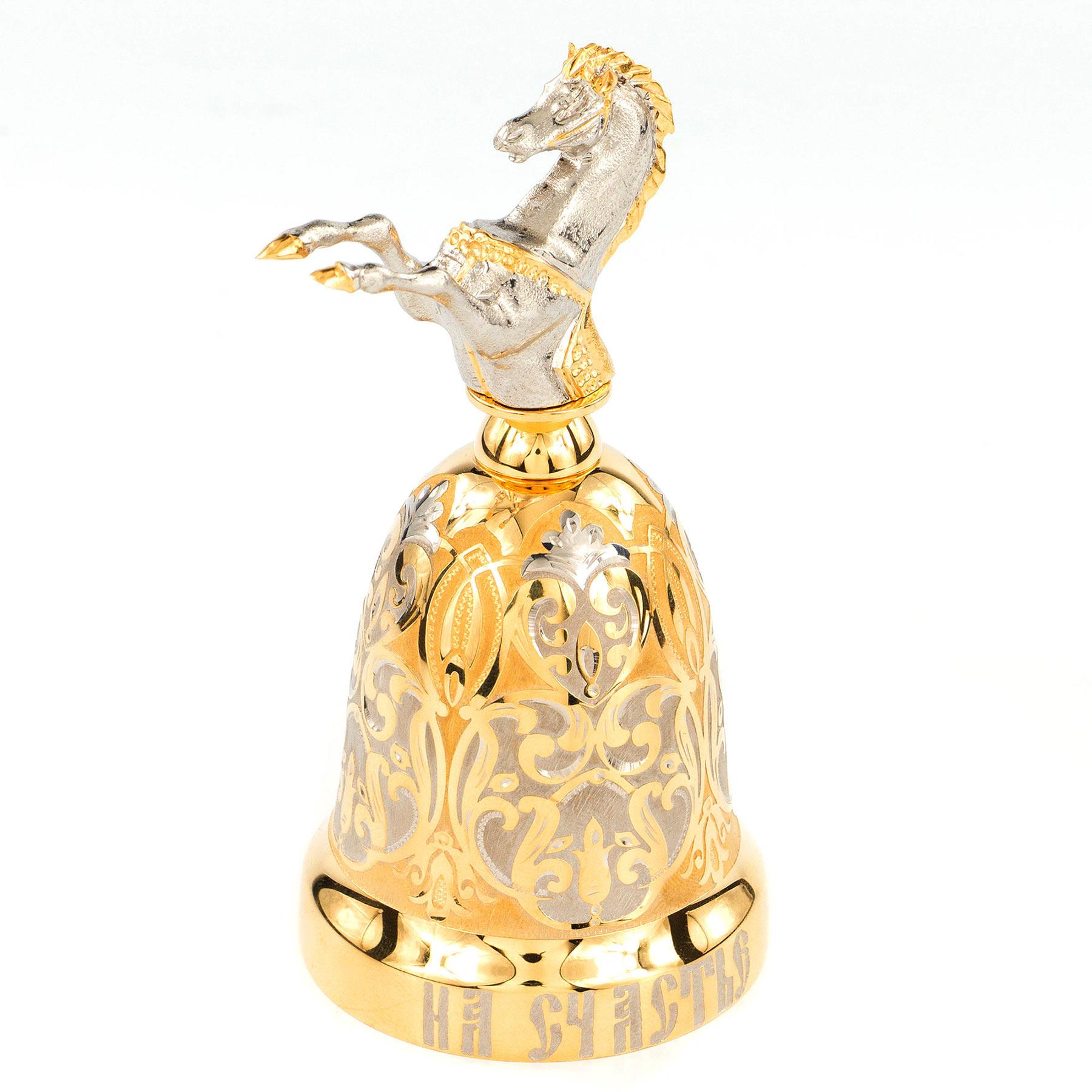 Колокольчик "конь" бронза позолота 60х60х120 мм 740 гр.