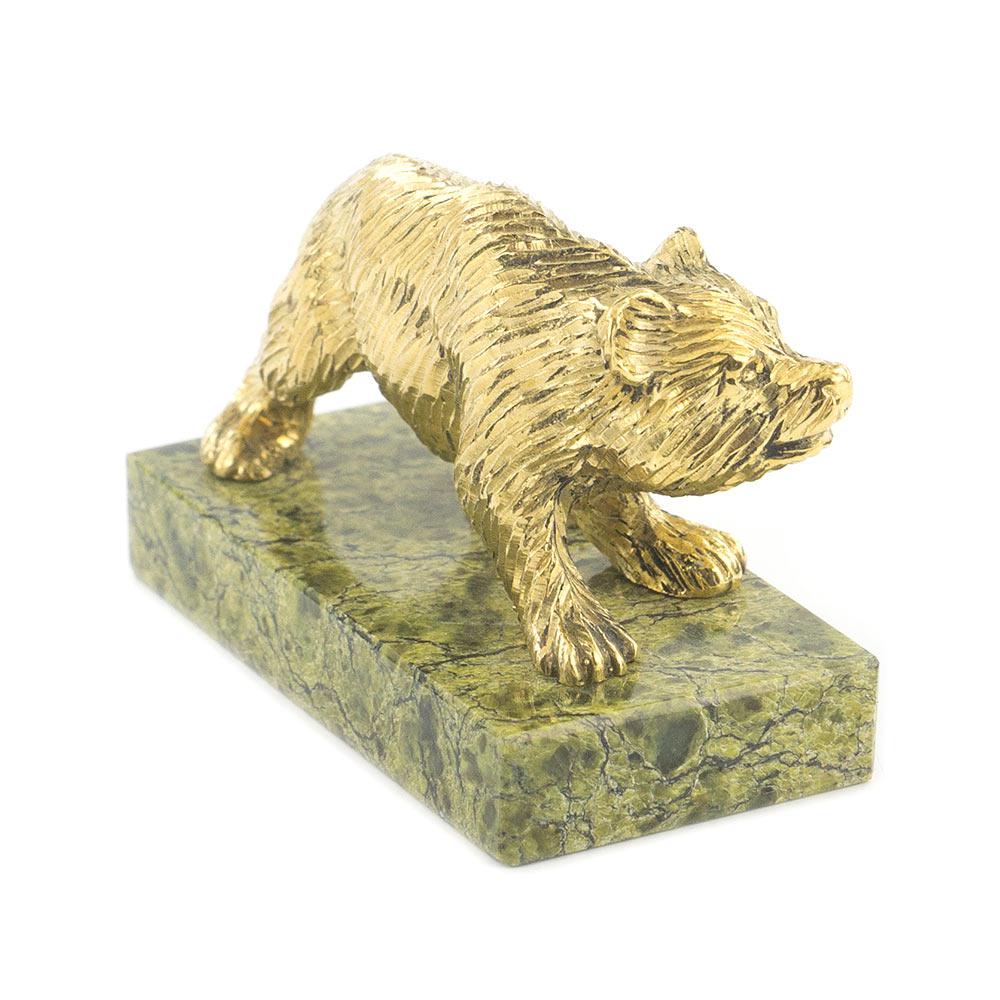 Статуэтка "медведь худой" бронза змеевик 55х25х40 мм 100 гр.