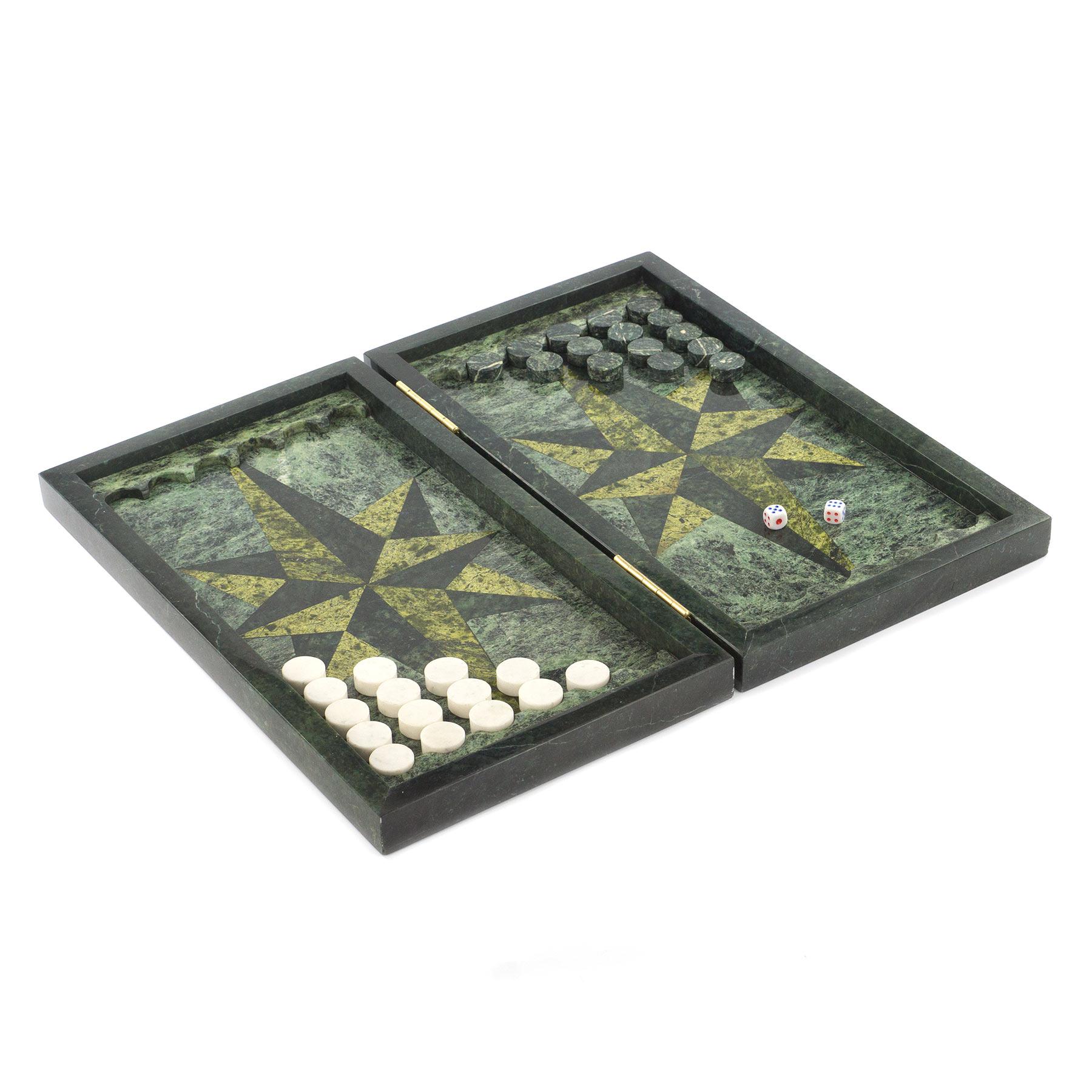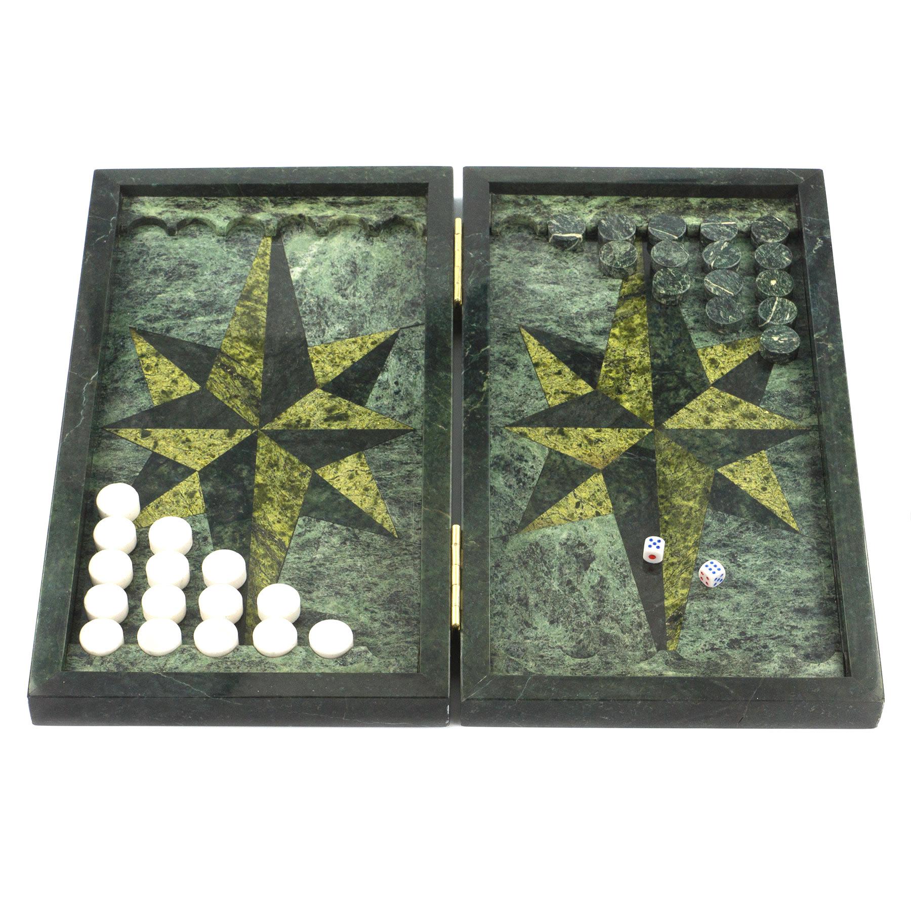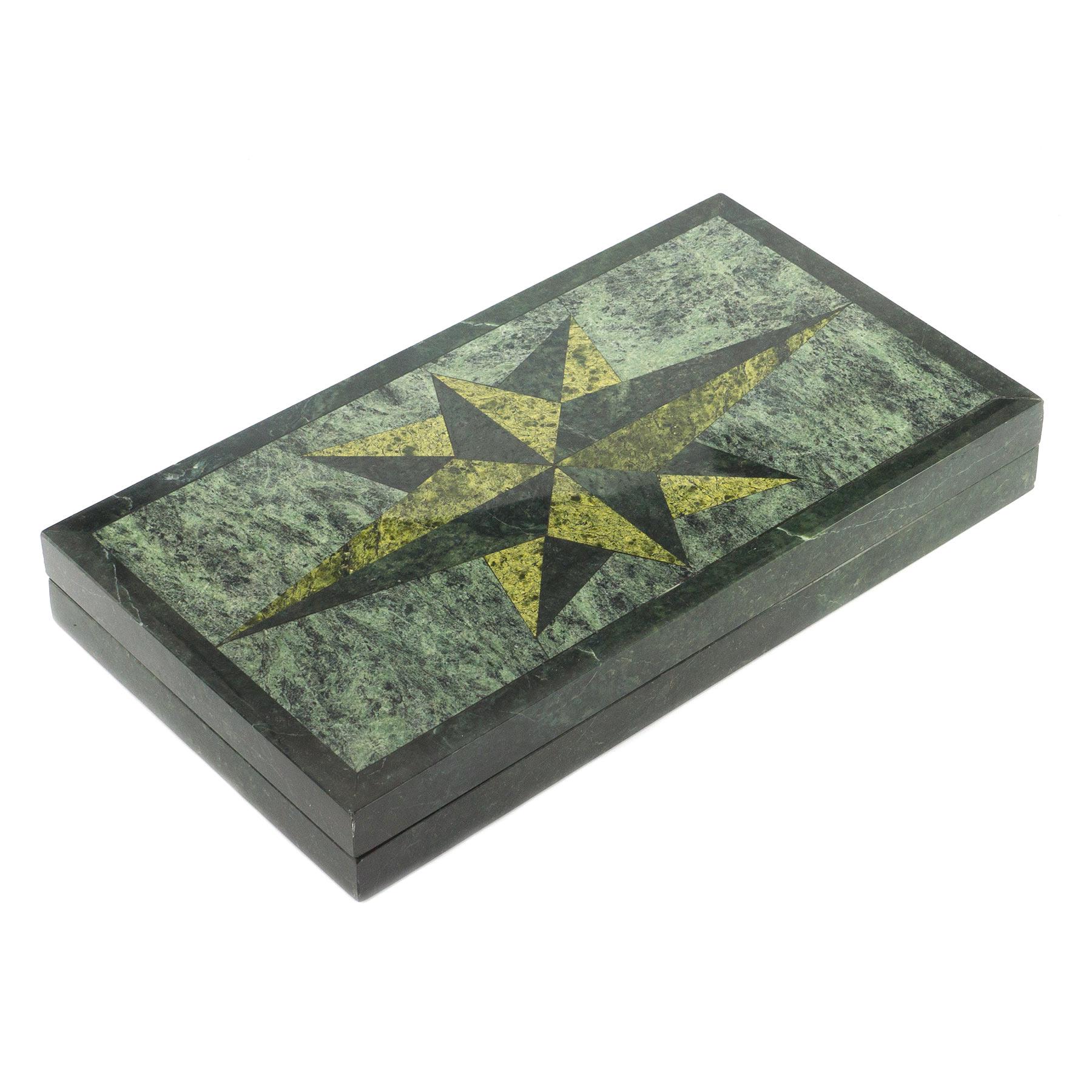Нарды "роза ветров" змеевик мрамор 480х435х30 мм