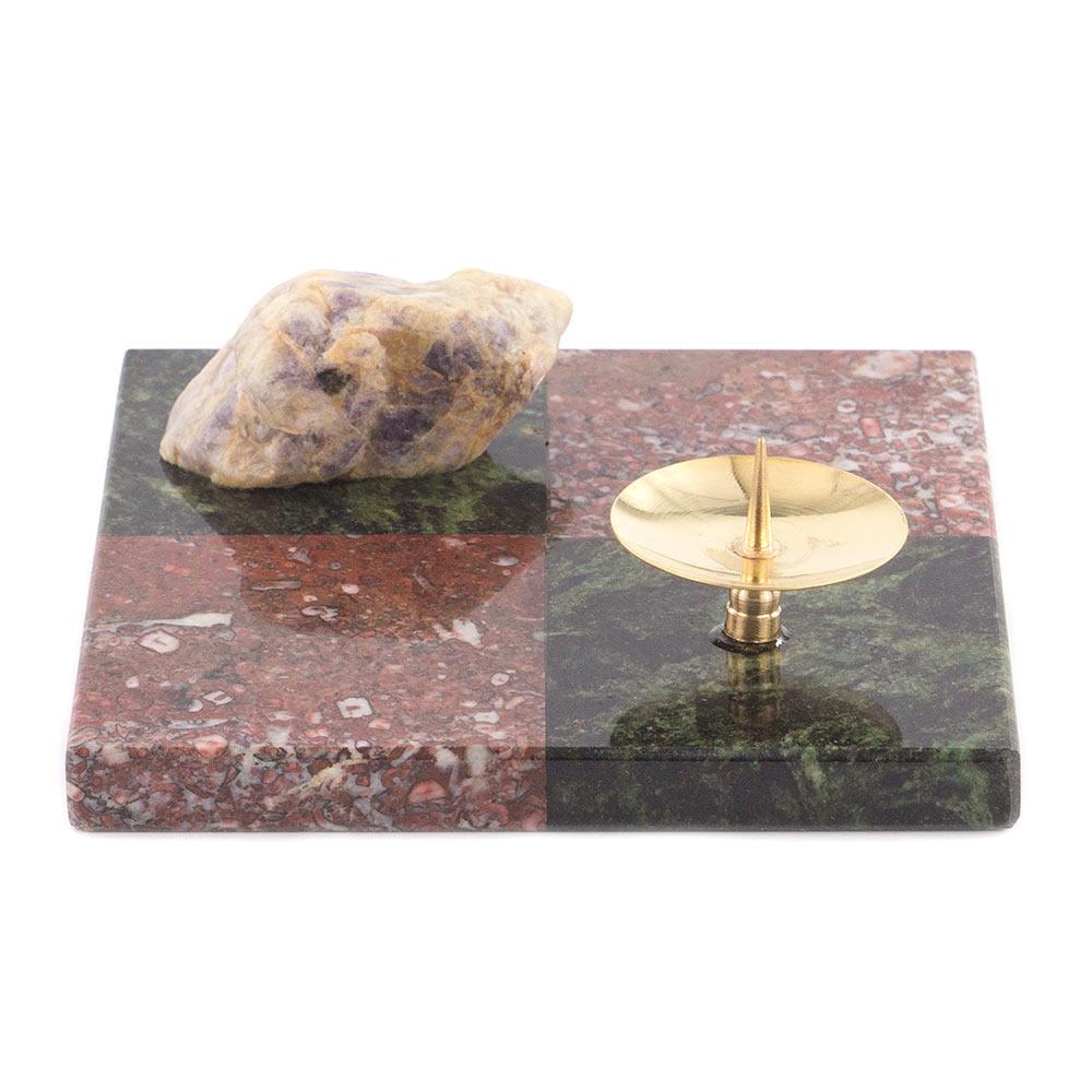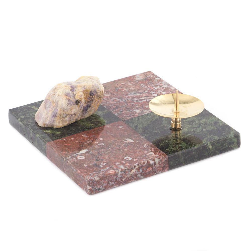 Подсвечник шахматный креноид змеевик 100х100х40 мм 300 гр.