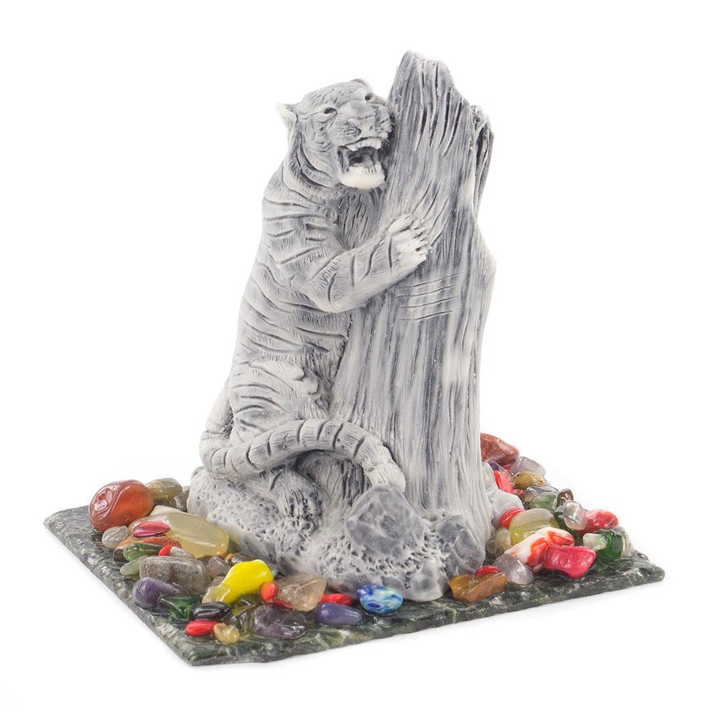 Сувенир "тигр у дерева" змеевик мрамолит самоцветы 105х85х115 мм