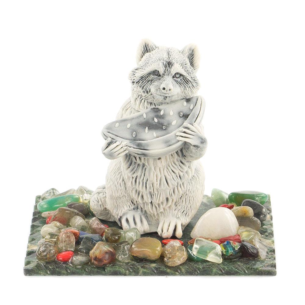 Сувенир "енот с арбузом" змеевик мрамолит самоцветы 90х65х75 мм