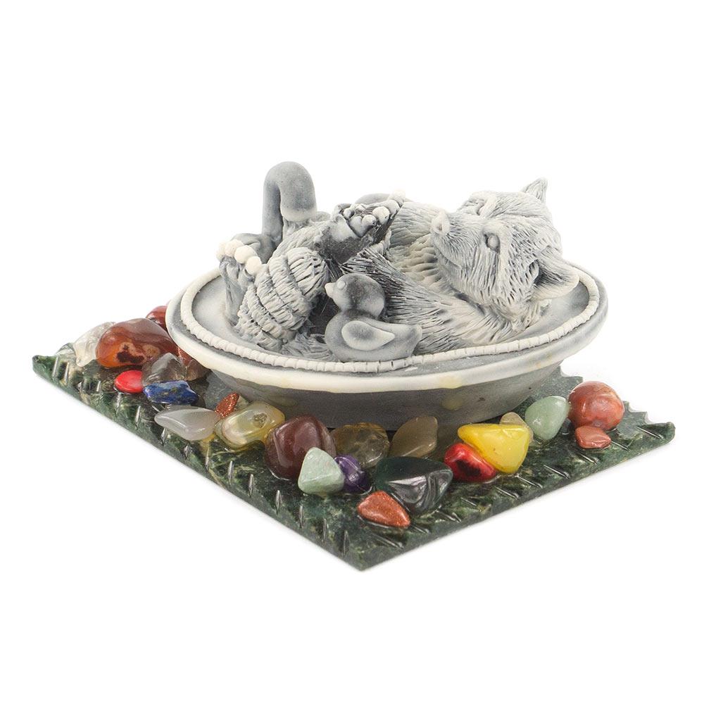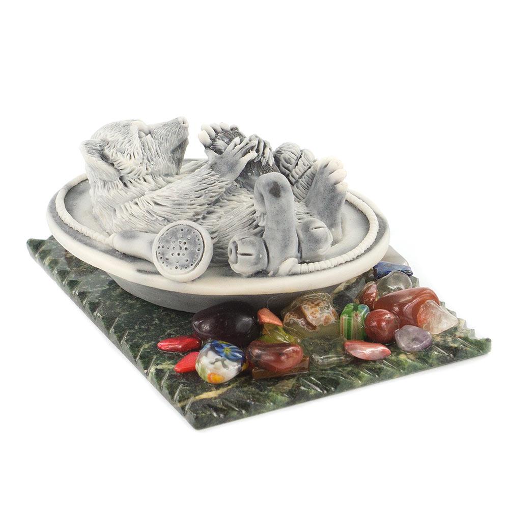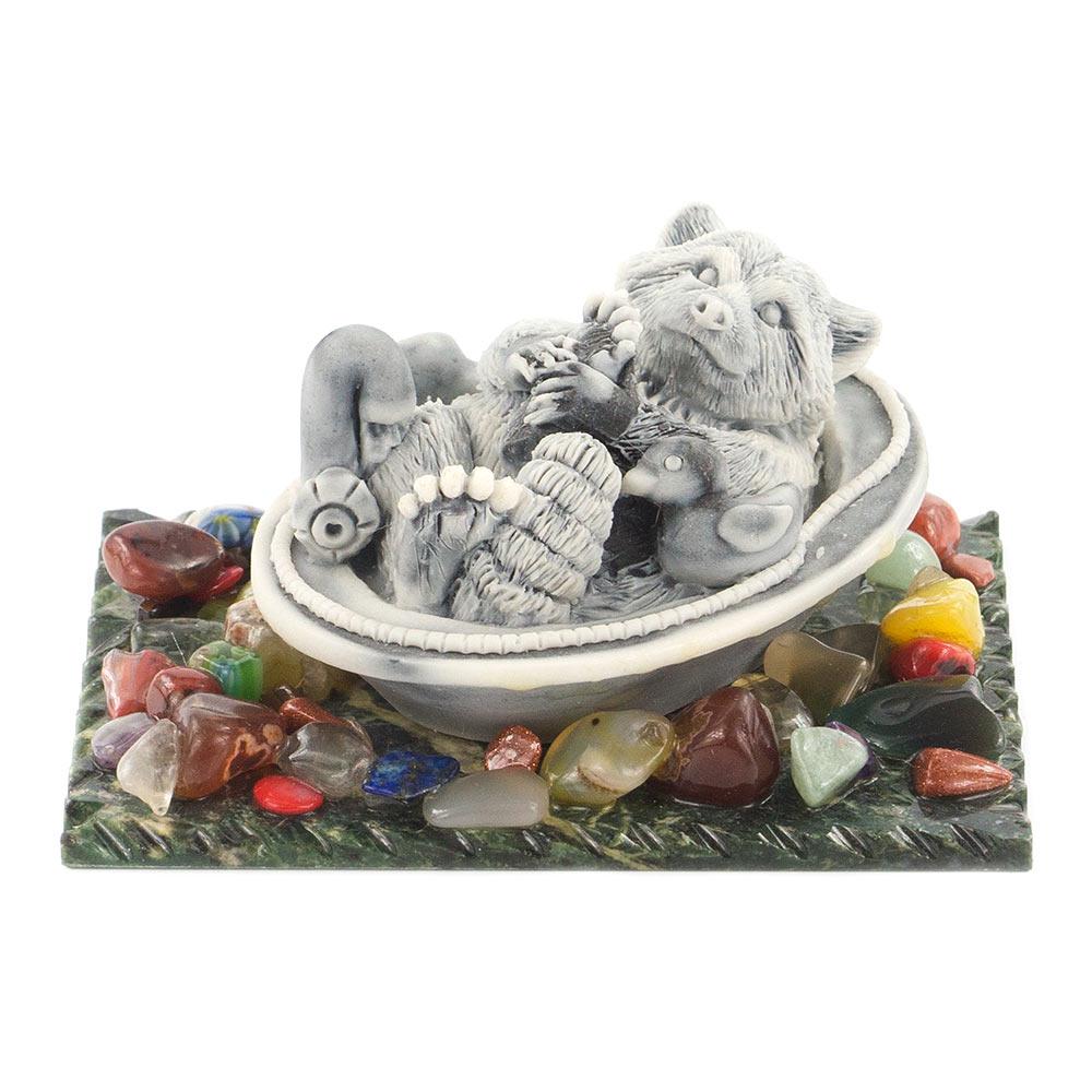 Сувенир "енот купается" змеевик мрамолит самоцветы 90х65х40 мм 1