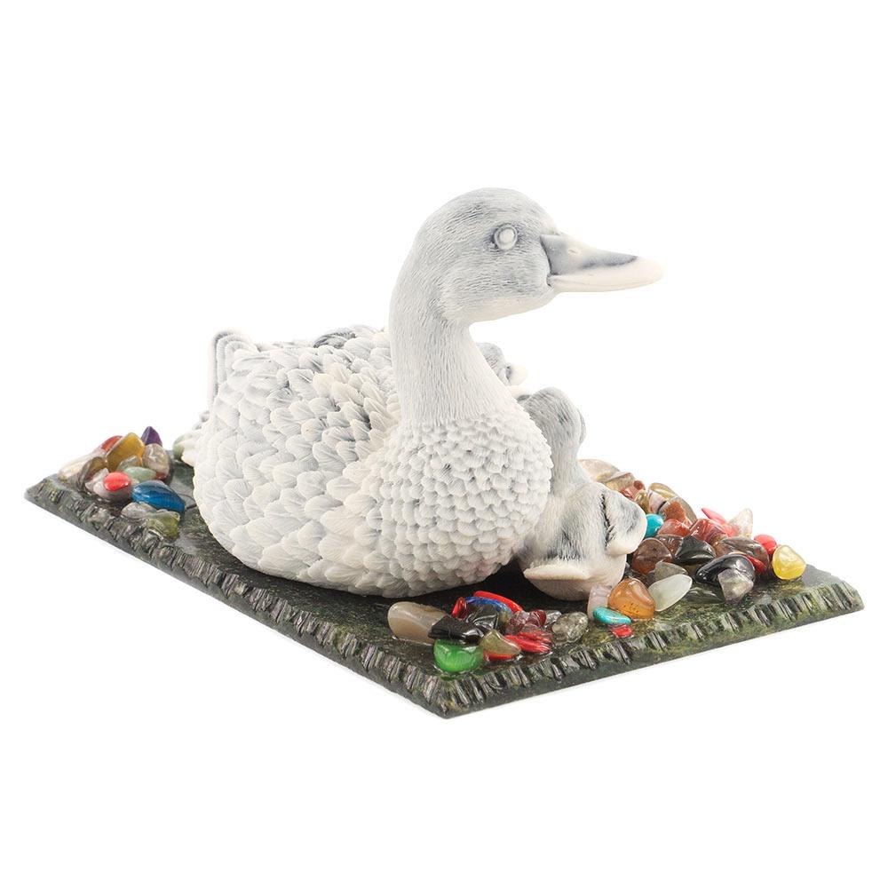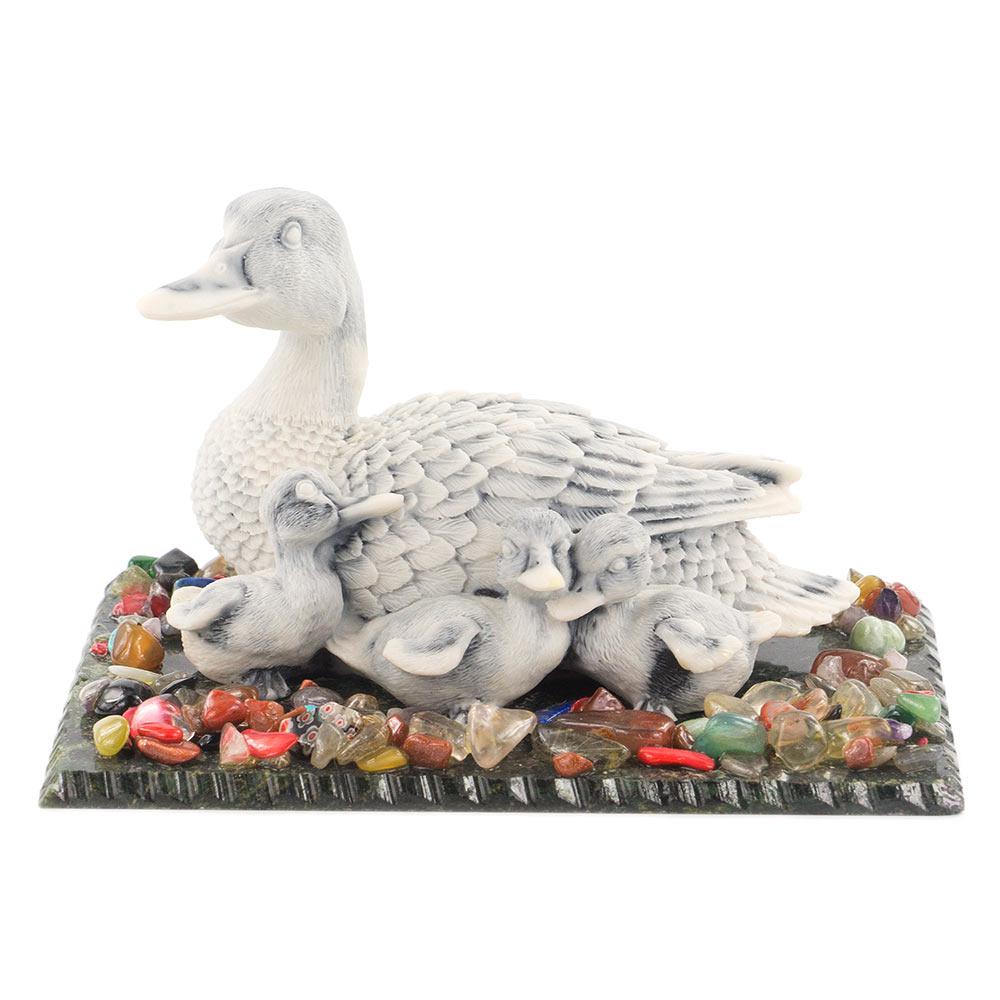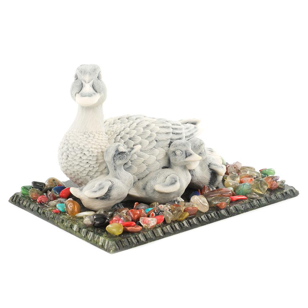 Сувенир "утка с утятами" змеевик мрамолит самоцветы 155х105х90 м
