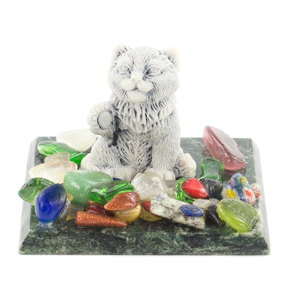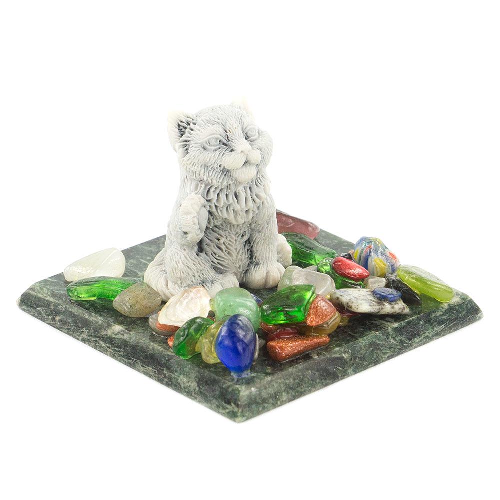 Сувенир "котенок с лапой" змеевик мрамолит самоцветы 60х60х40 мм