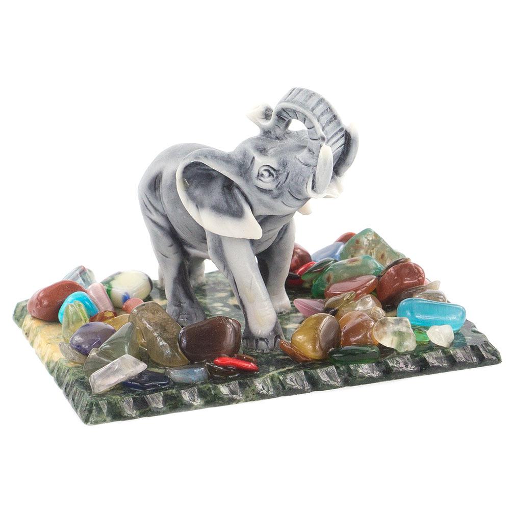 Сувенир "слон малый" змеевик мрамолит самоцветы 90х65х60 мм 130