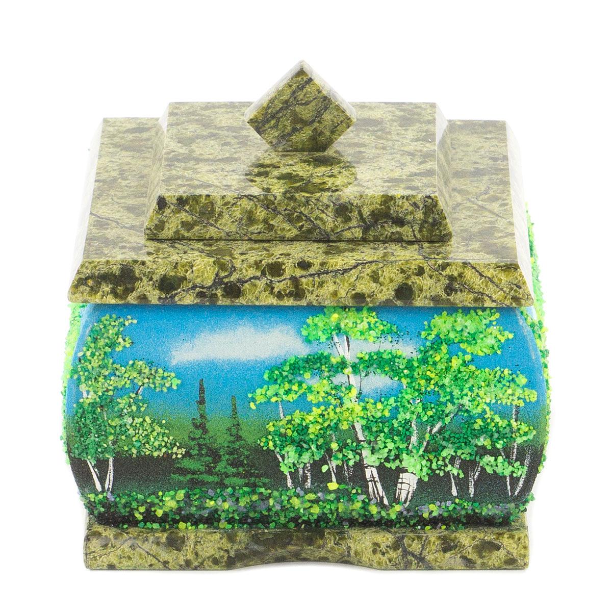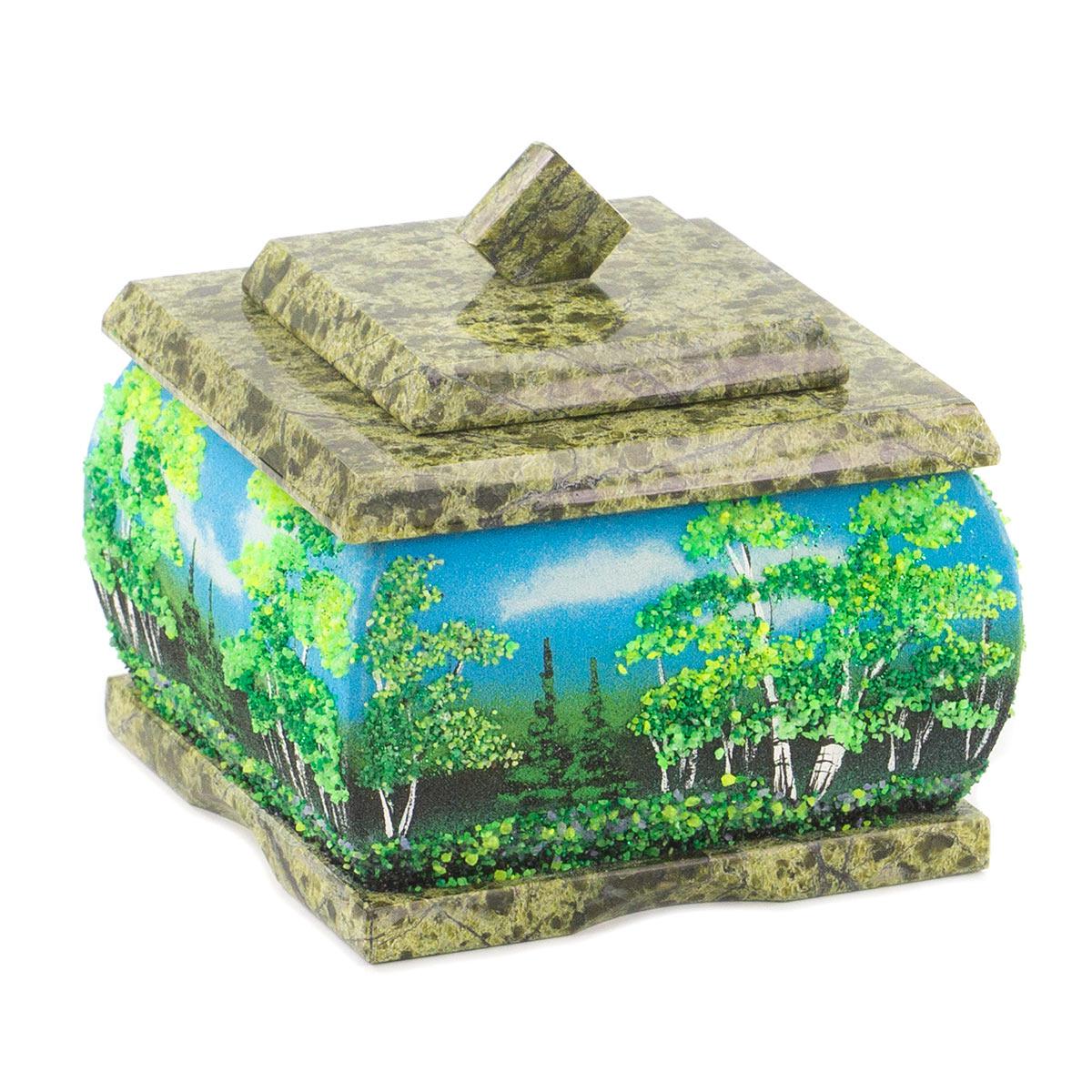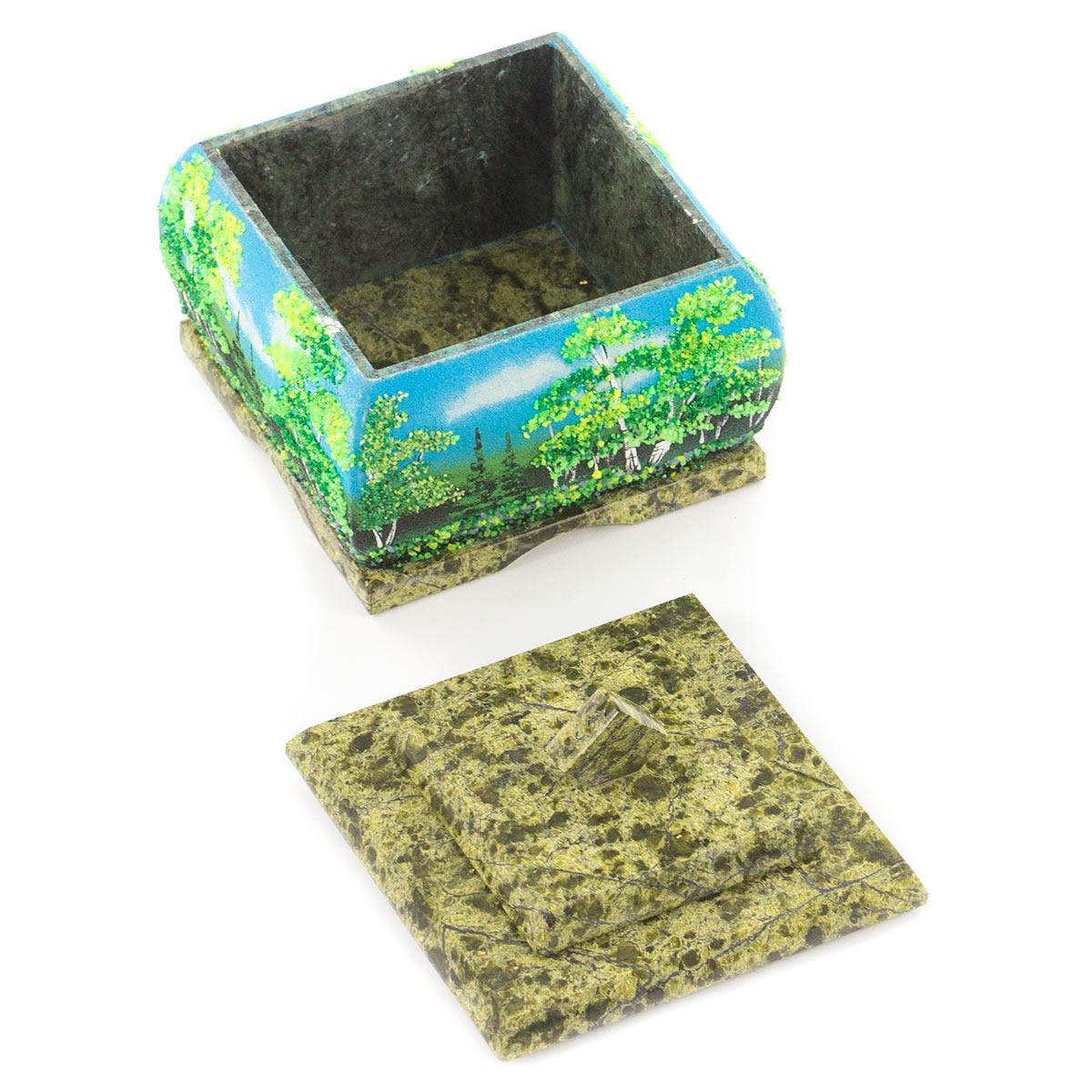 Шкатулка змеевик рисунок лето в ассортименте 100х100х90 мм 800 гр.