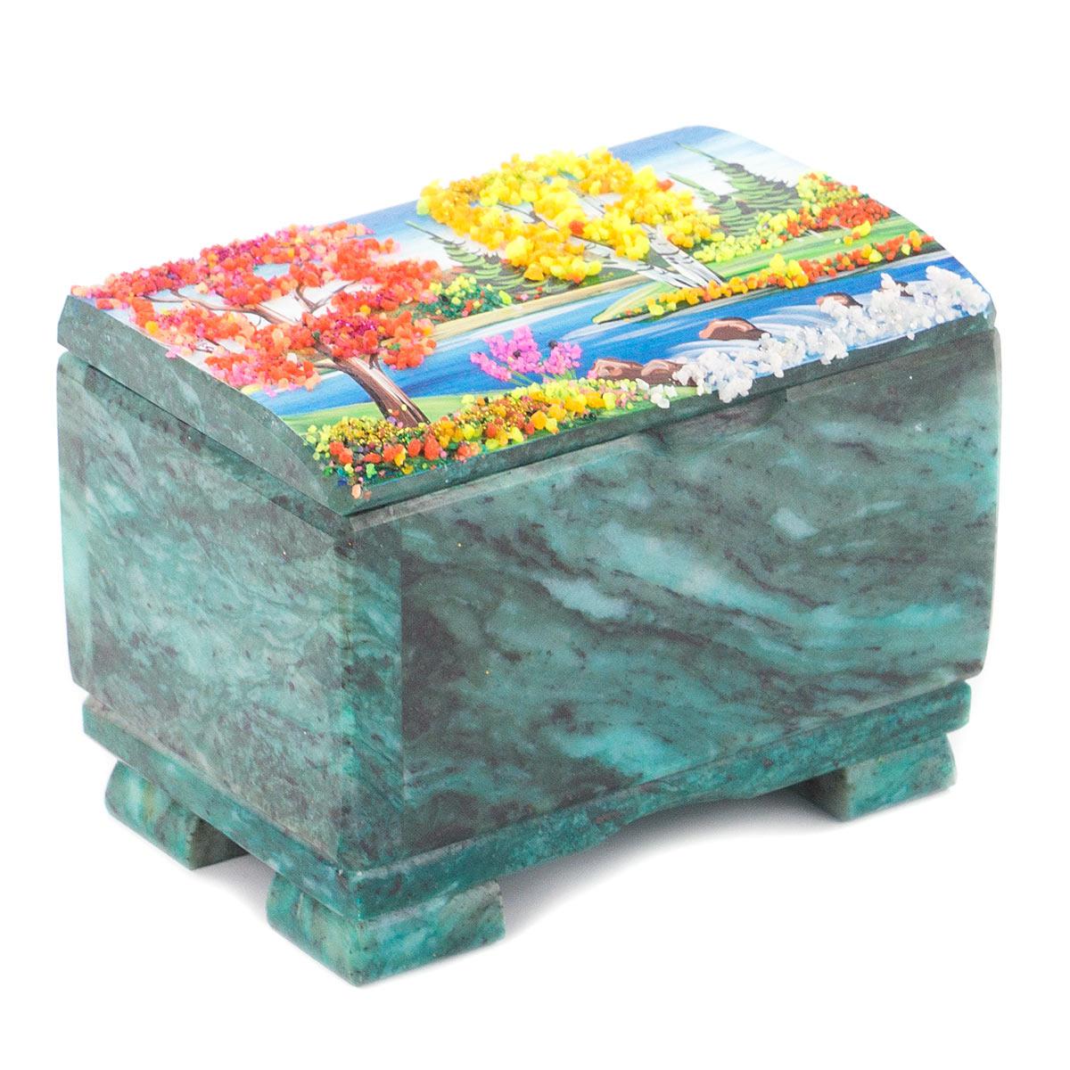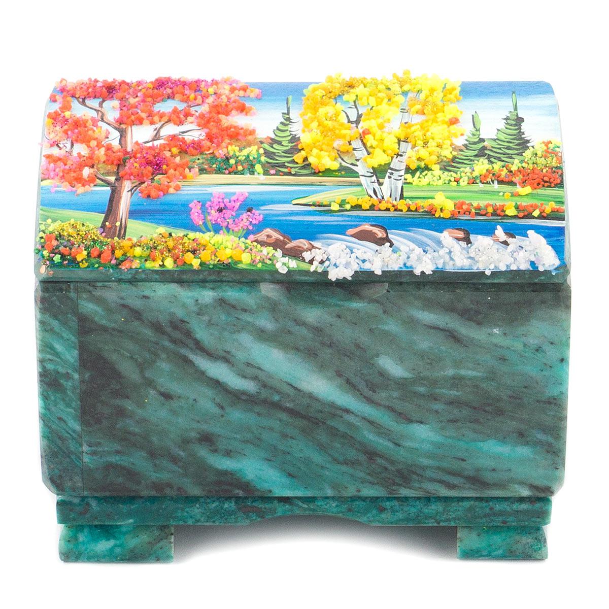 Шкатулка "сундучок" змеевик рисунок осень в ассортименте 115х80х
