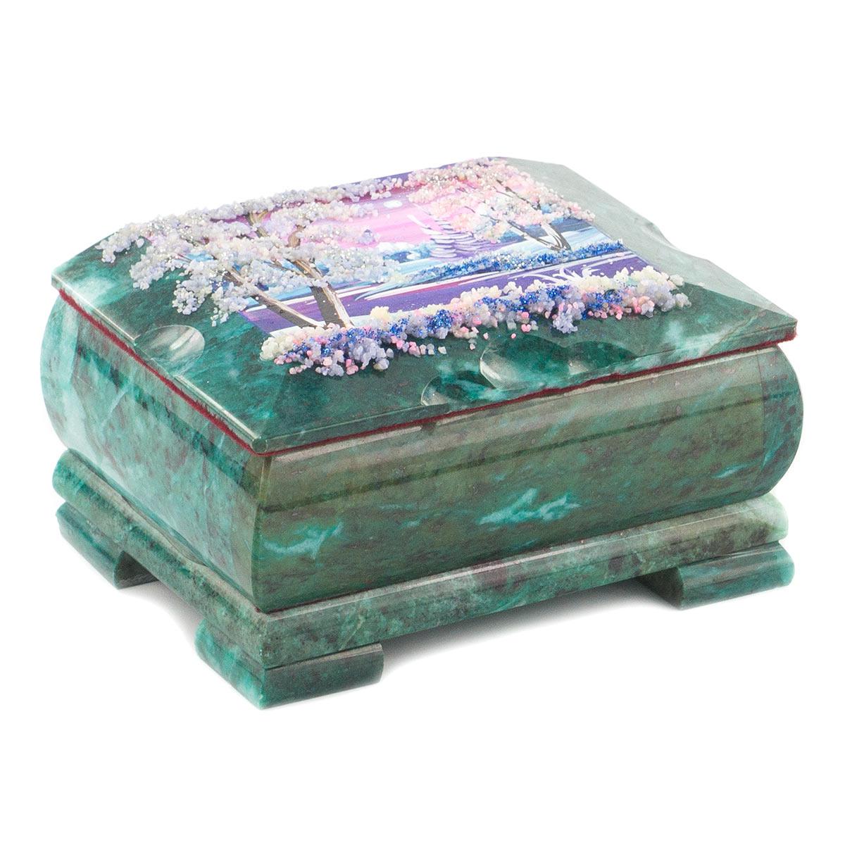 Шкатулка с расписной крышкой зима в ассортименте 135х100х80 мм 1250 гр..
