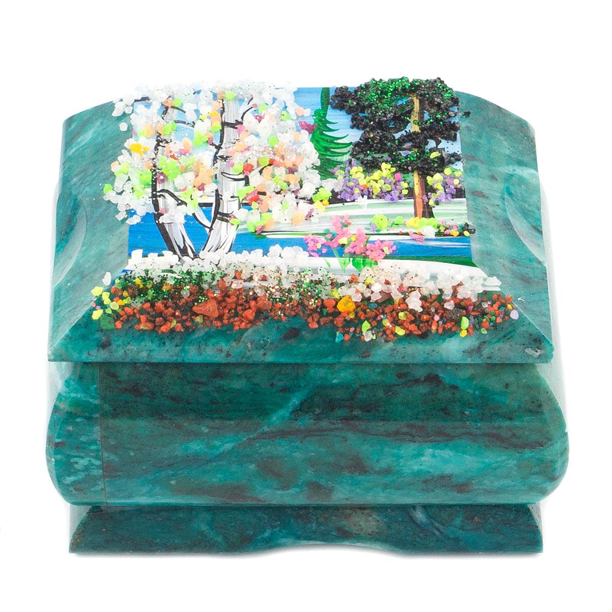 Шкатулка с расписной крышкой весна в ассортименте 80х60х55 мм 400 гр.