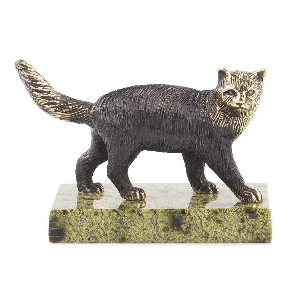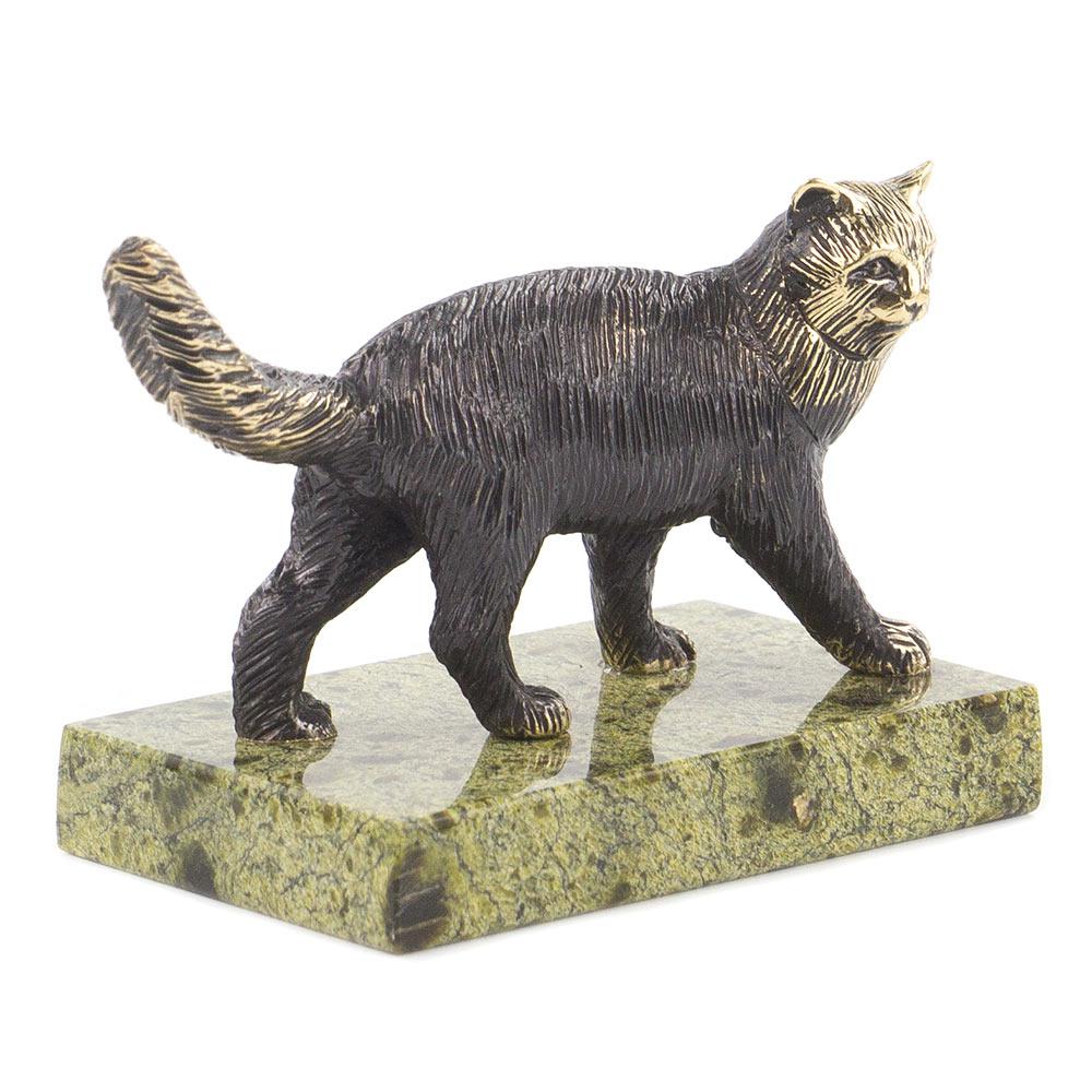 Статуэтка "кот идет" бронза змеевик 85х45х60 мм 220 гр.