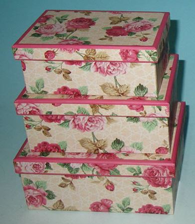 Комплект коробок из 3шт. "роза" (прямоуг.) 15*11*7см. Артикул: 225-029 Направленность: Женские, Молодежные Сертификация: Товар подлежит декларированию. Состав: негофрированный картон, бумага.