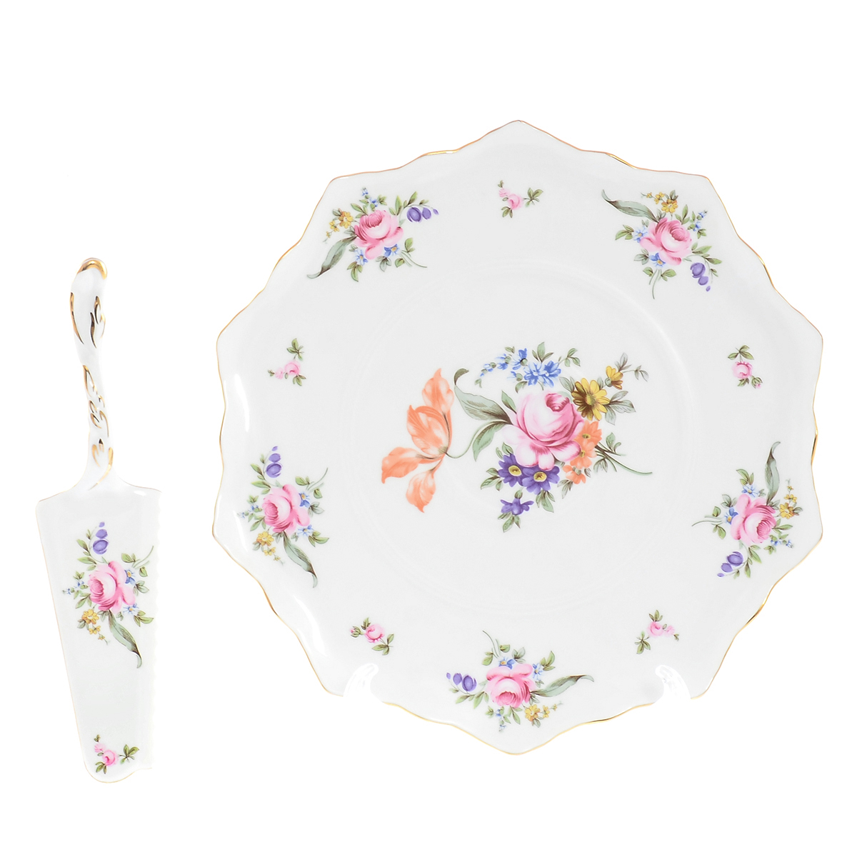 Тарелка для торта с лопаткой Queens Crown корона полевой цветок 28 см