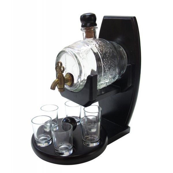 Емкость для напитков 500 мл с 6 стопками на деревянной подставке, L15 W20