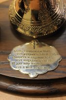 Колокольчик на подставке лик николая чудотворца и животворящий крест