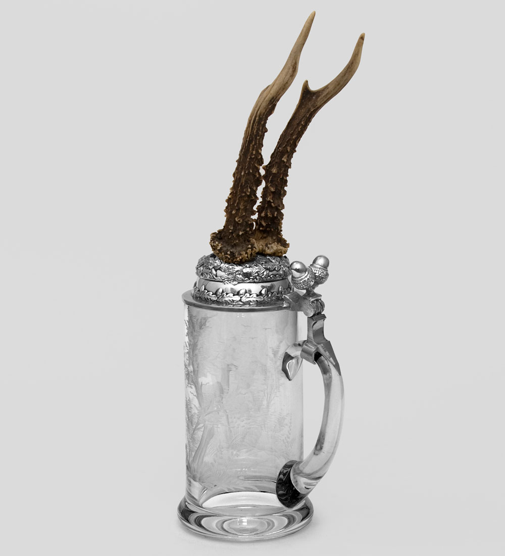 W-519-2r пивная кружка с рожками косули с гравировкой