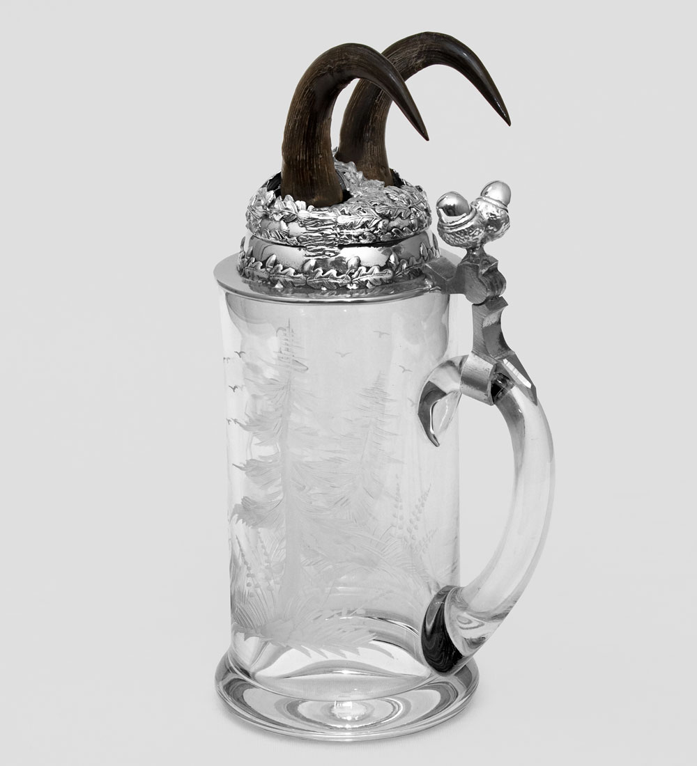 W-519-4g пивная кружка с рожками серны с гравировкой