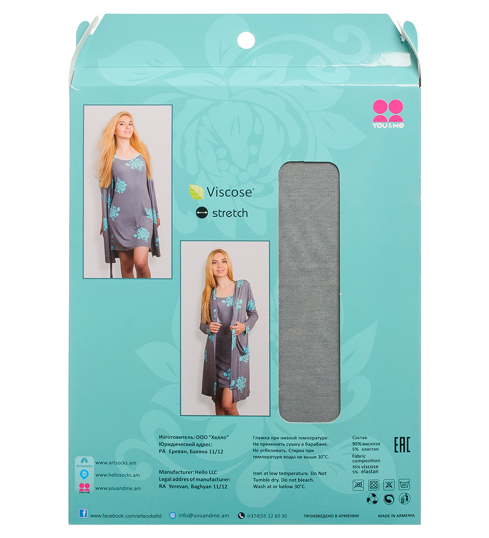 Сорочка + халат для дома 308р. Параметры товара Материал: хлопок - 95%, эластан - 5% Страна производства: Армения Страна бренда: Армения