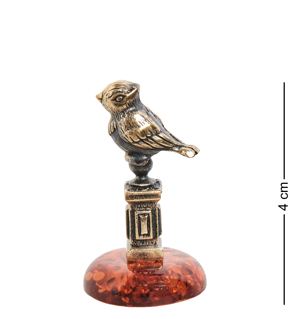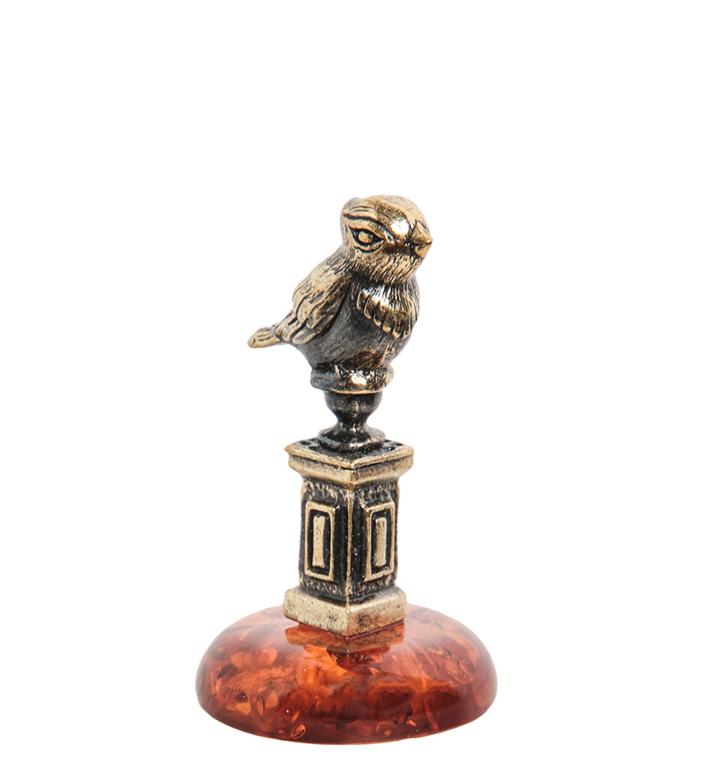 Am- 616 фигурка чижик-пыжик на подставке (латунь, янтарь)
