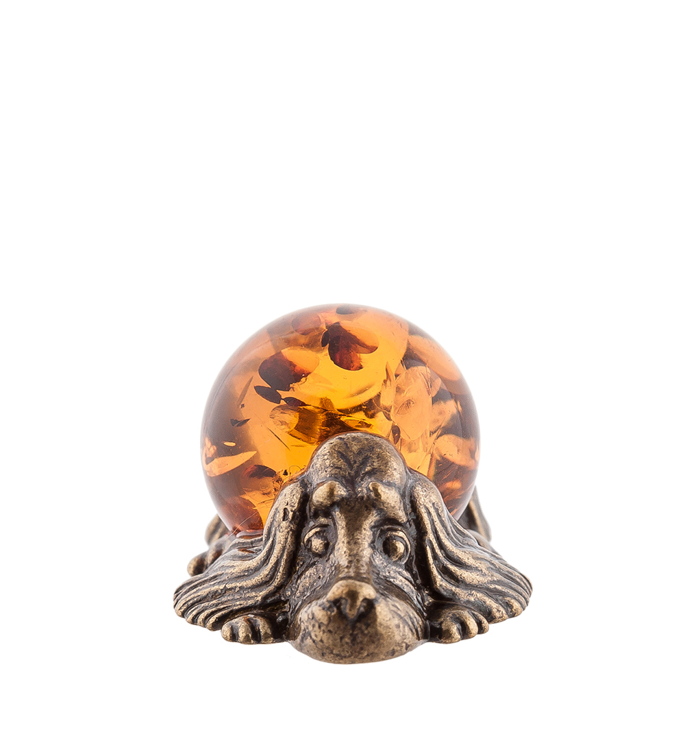 Am-565 фигурка спаниель (латунь, янтарь)
