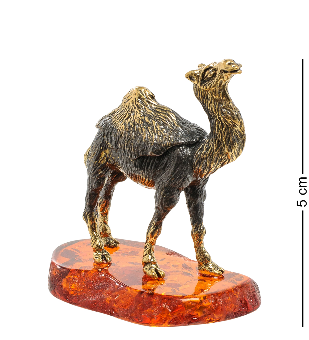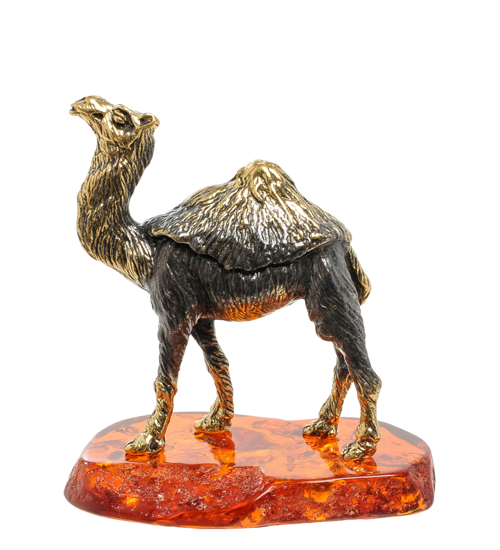 Am-1908 фигурка верблюд в пустыне (латунь, янтарь)