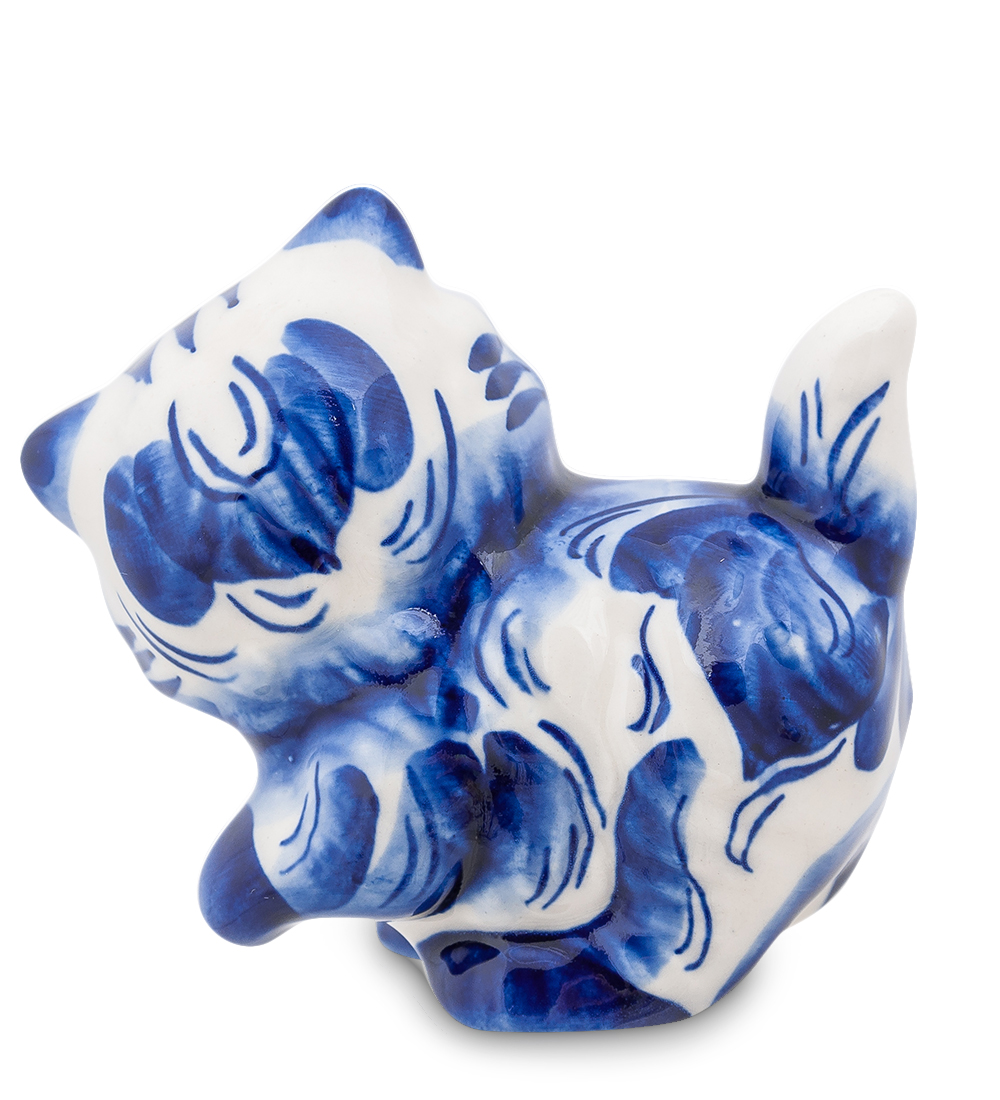 Гл-191 фигурка кот-пушистик (гжельский фарфор)