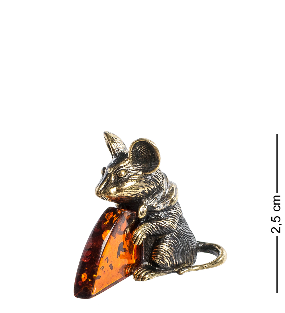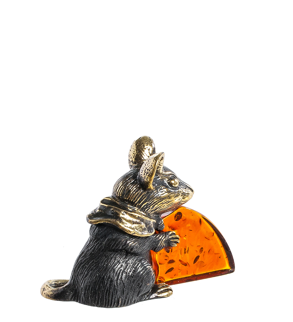 Am-461 фигурка мышка с сыром (латунь, янтарь)