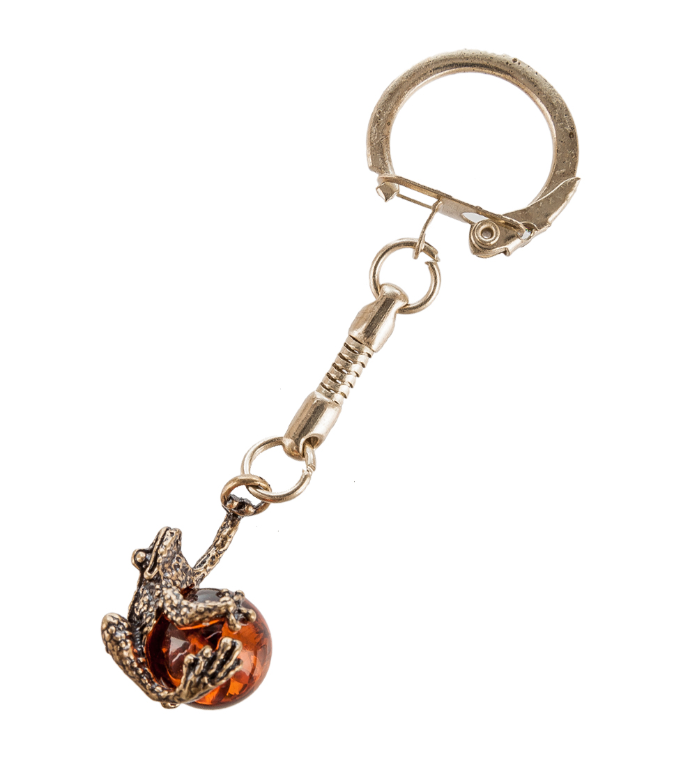 Am-054 брелок лягушка (латунь, янтарь)