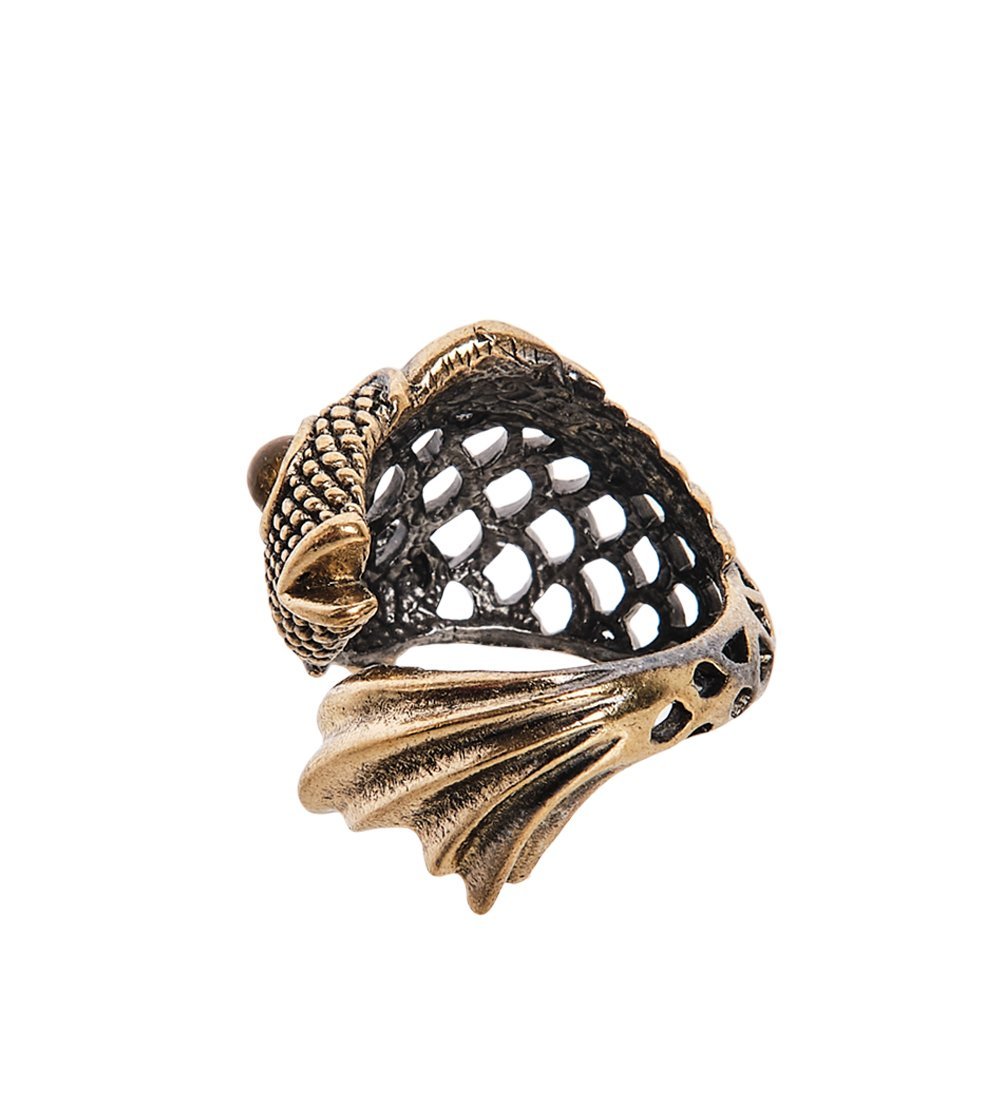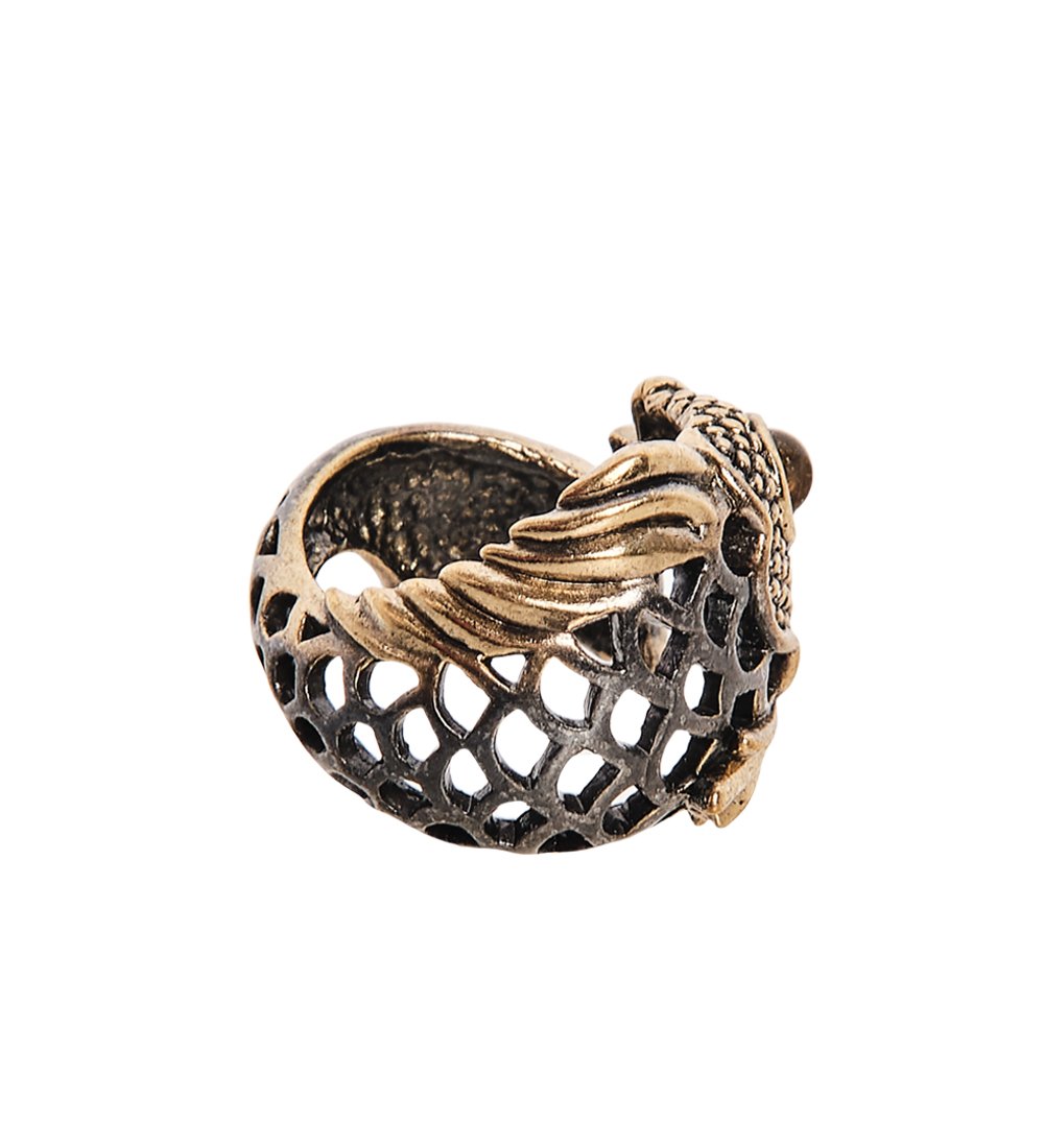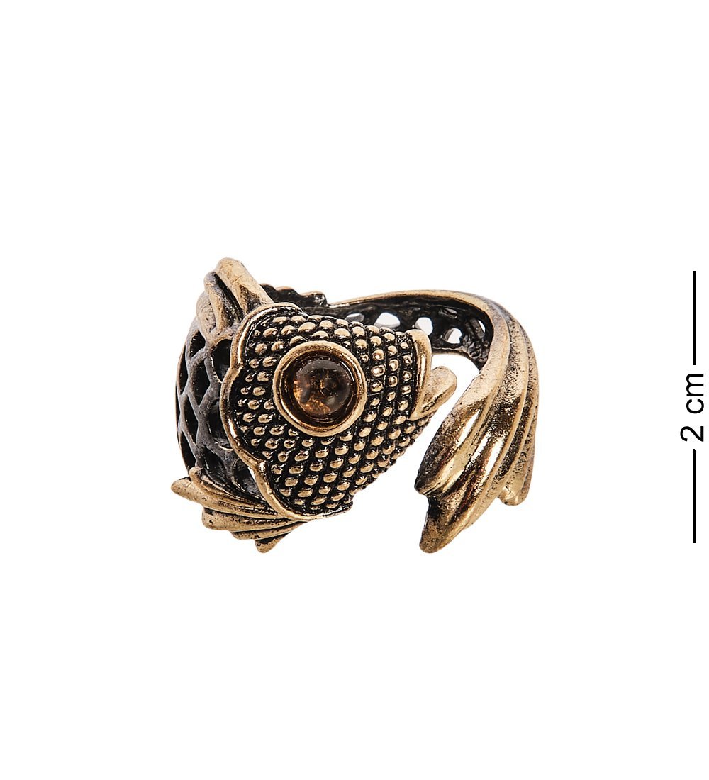 Am-2494 кольцо рыбка золотая (латунь, янтарь)