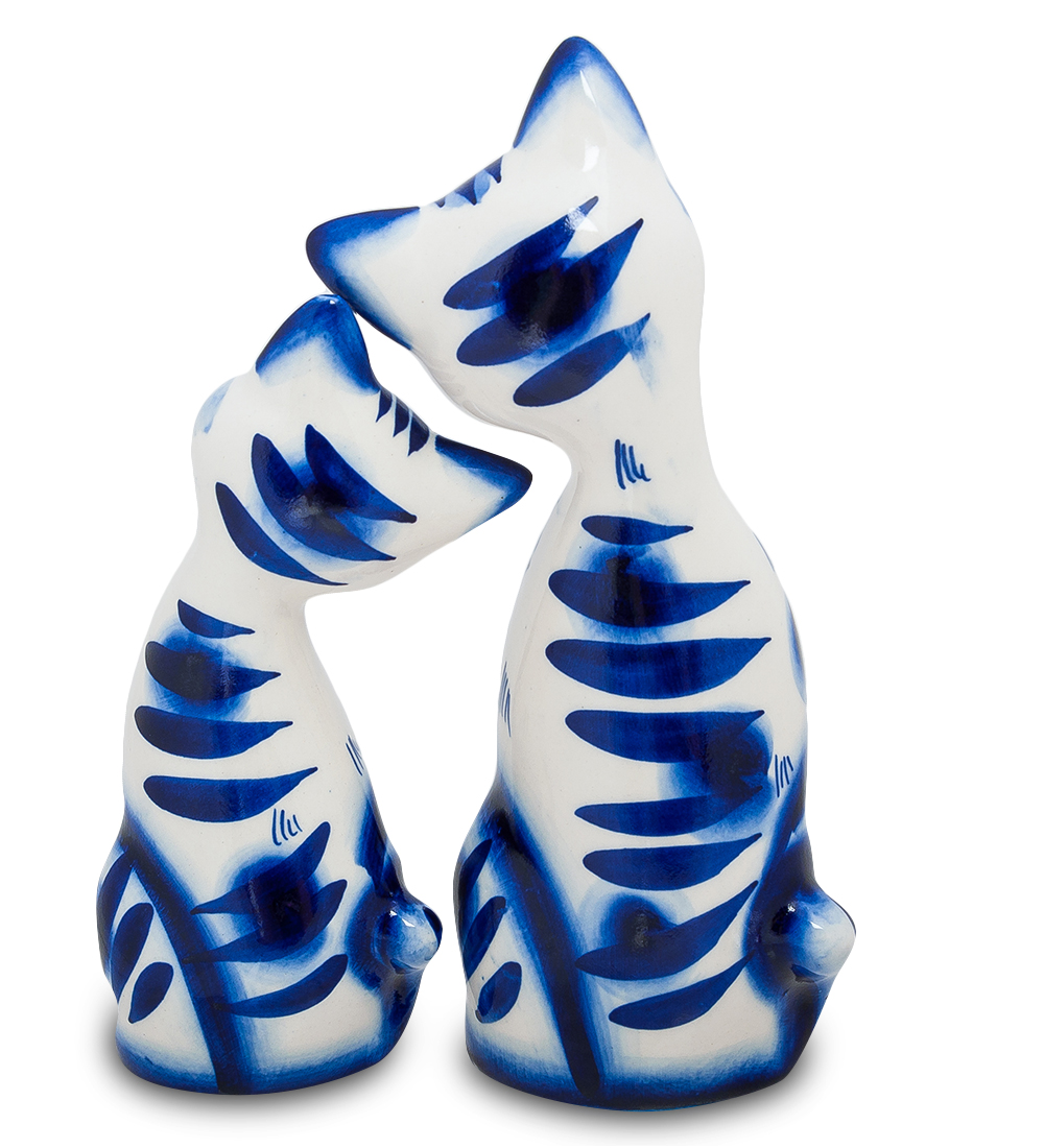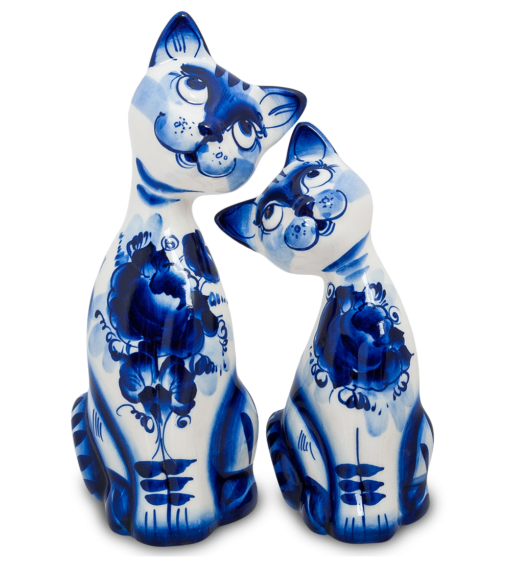 Гл-237 фигурка пара котов бол. (гжельский фарфор)