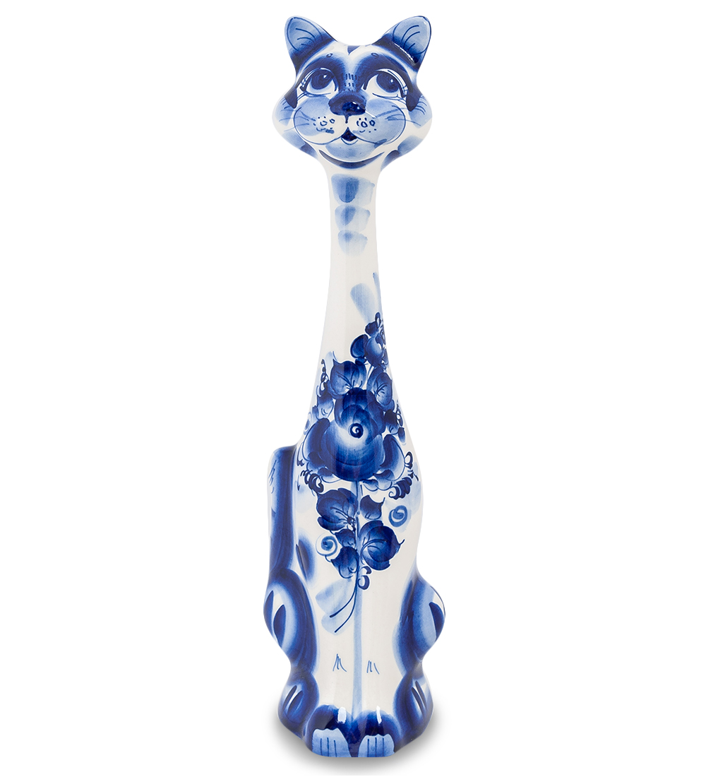 Гл-173 фигурка кот-кегля (гжельский фарфор)