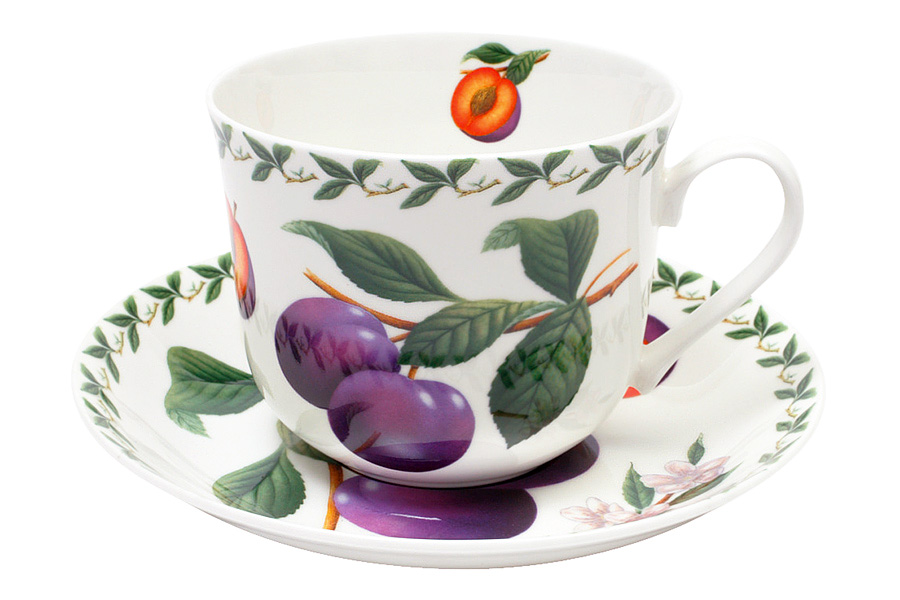 Чайный набор на 4 персоны Доляна , сервиз 8 предметов: 4 шт чашки 200 мл и блюдца из фарфора, подарочный Кружка Dunoon Фиалка.Бьютшир 300мл