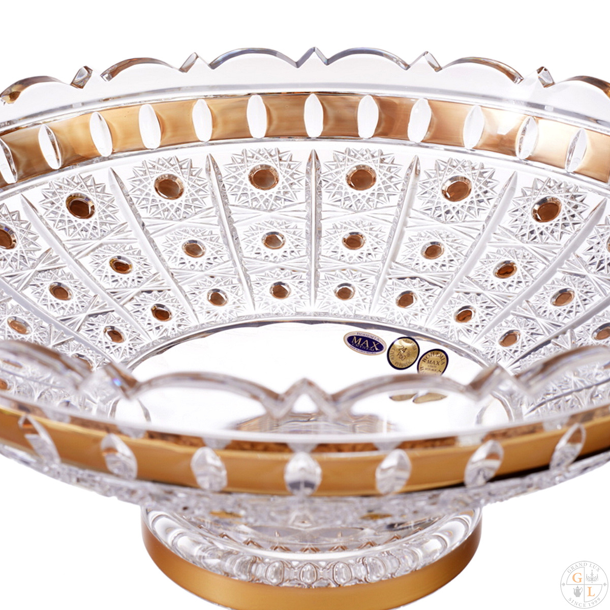 Фруктовница на ножке Bohemia Max Crystal золото филиция 35см