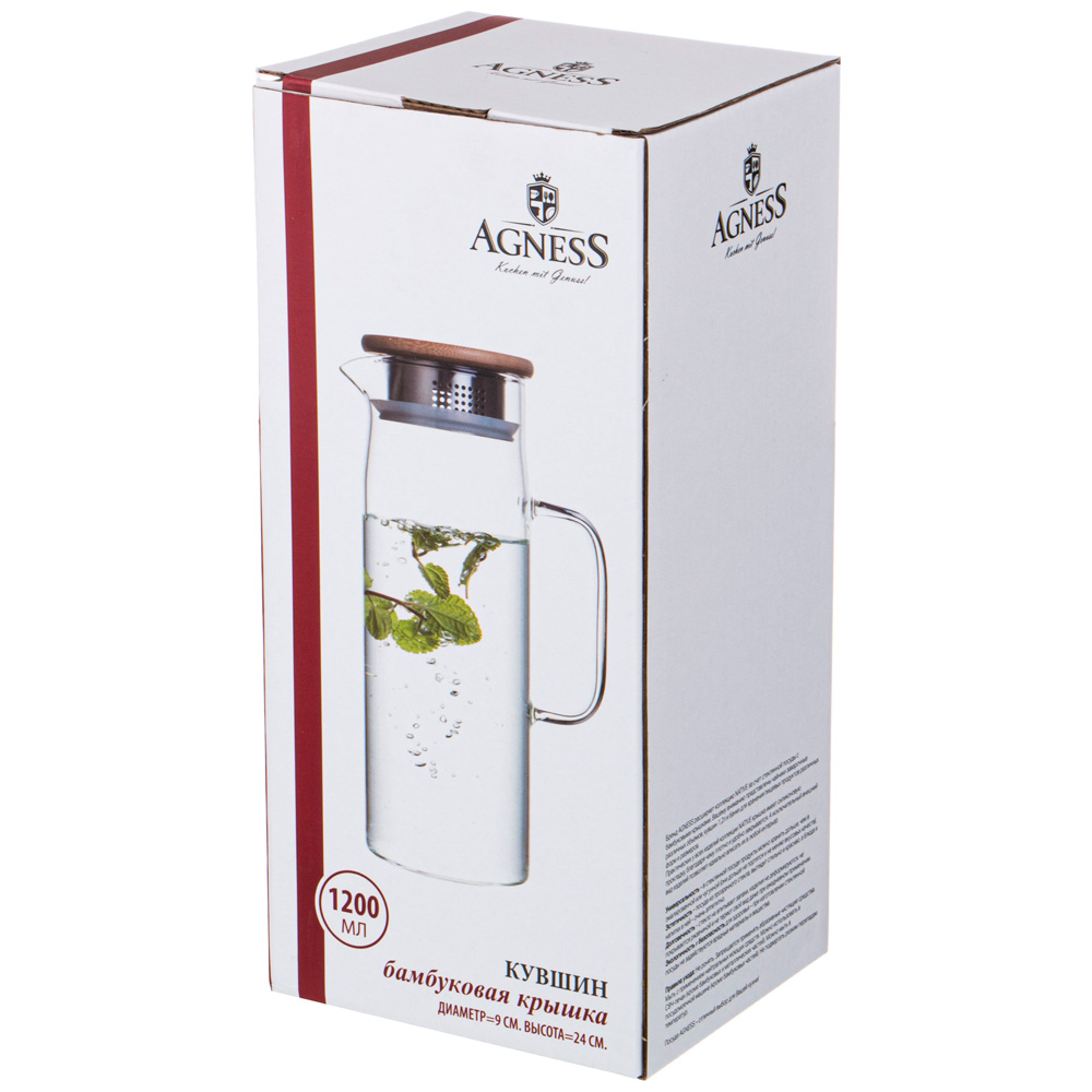 Кувшин 1200 мл. с бамбуковой крышкой. диаметр=9 см. высота=24 см.