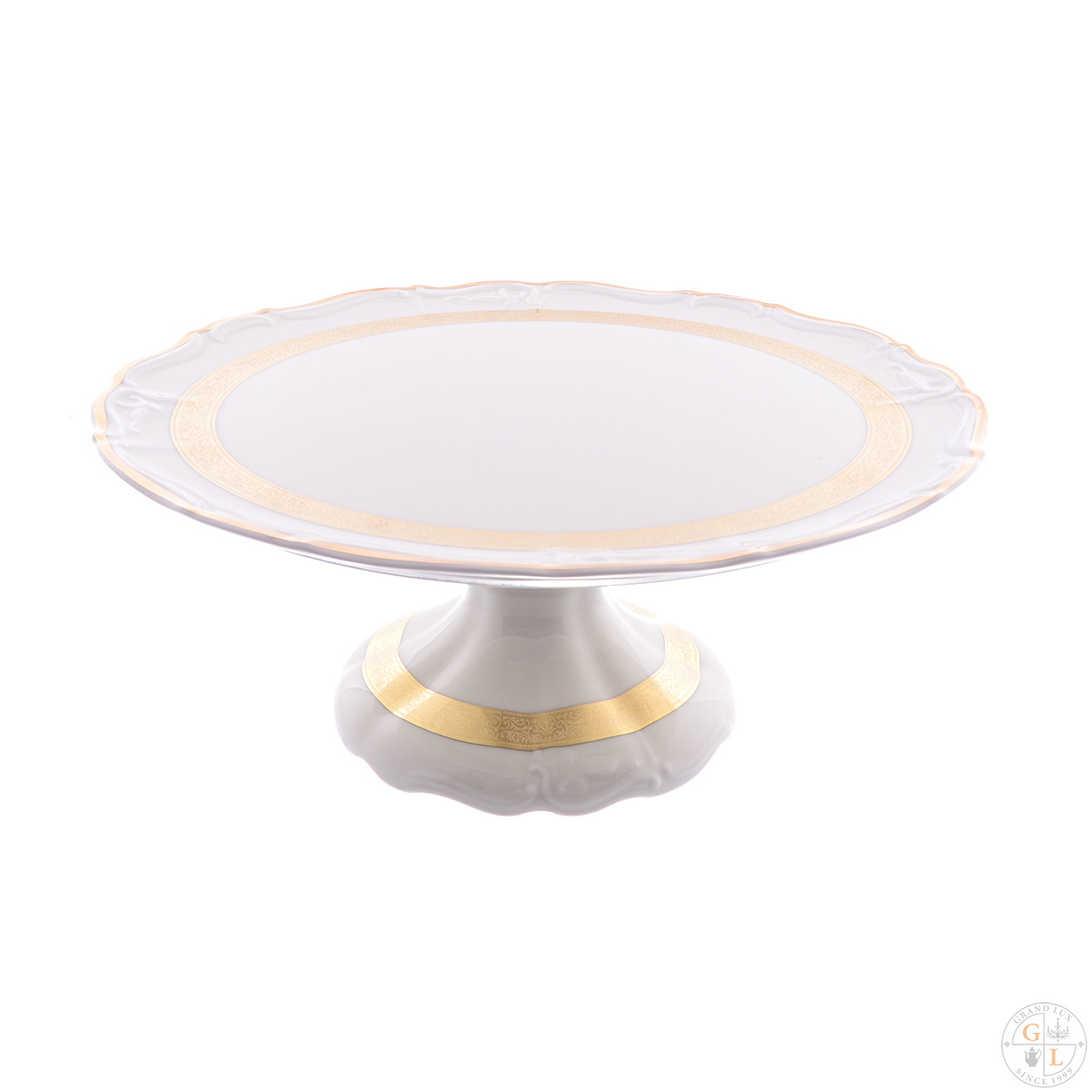 Тортница на ножке Thun мария луиза золотая лента Ivory 32см