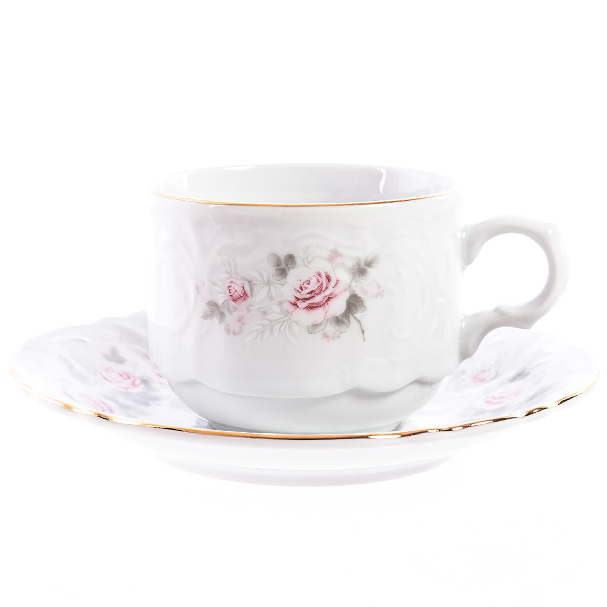 Набор чайный пар хотел Bernadotte серая роза золото 250 мл(6 пар)