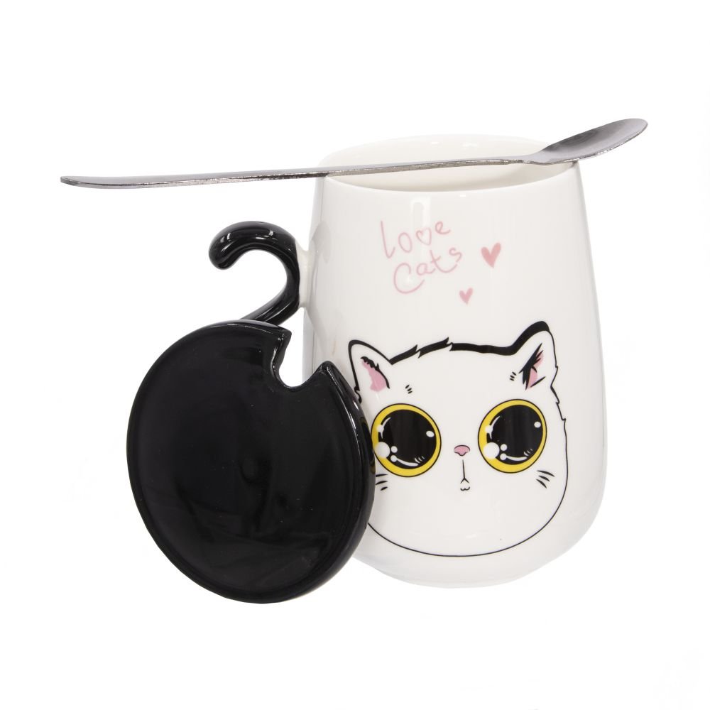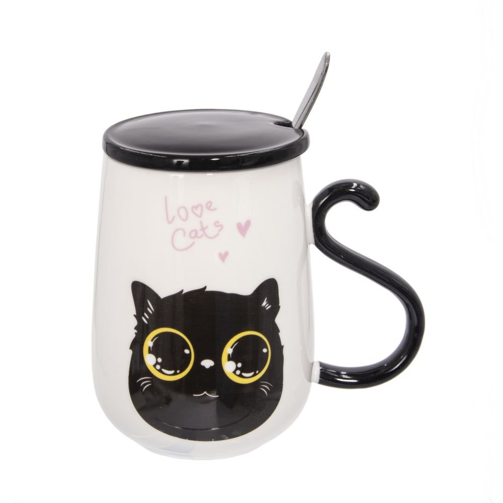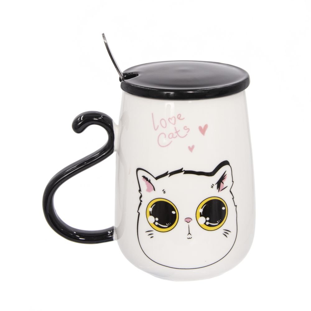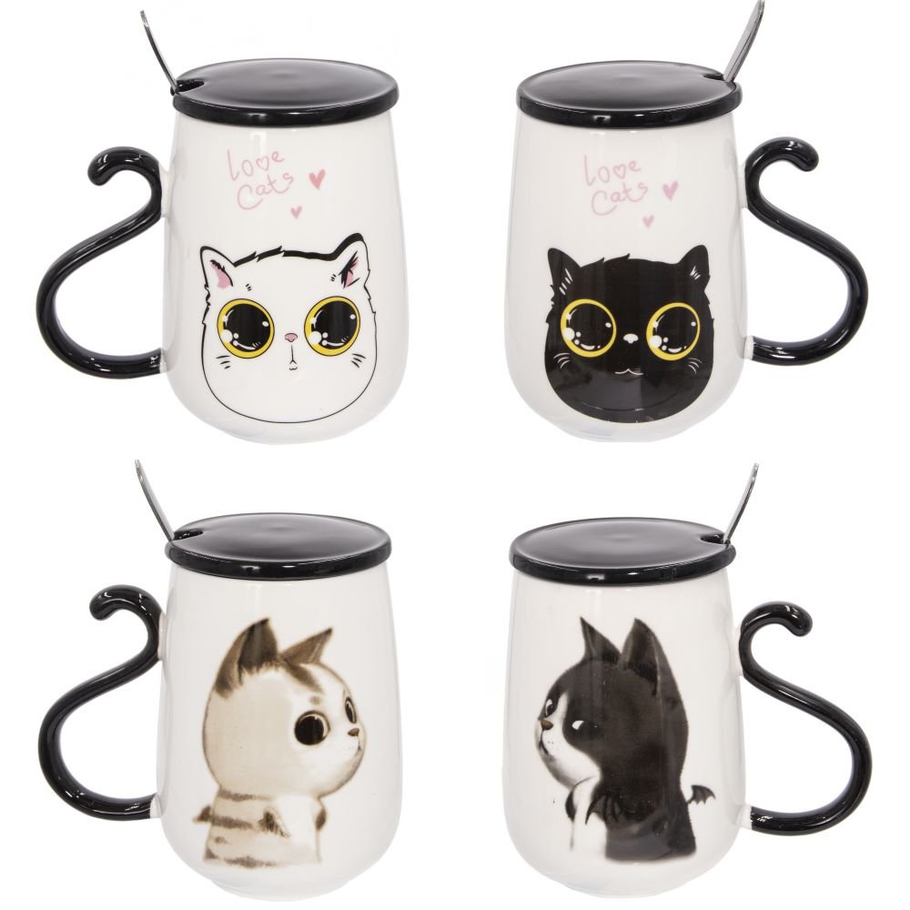 Кружка с крышкой и ложкой, 500 мл, 4в.