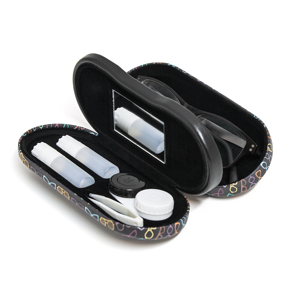 Футляр для очков и контактных линз twin pattern черный. Если очки и линзы должен подбирать врач, то футляры и другие аксессуары вы можете выбирать сами. Рекомендуем остановить свое внимание на футляре для очков и контактных линз Twin pattern. Это не только удобная и практичная вещь, но и стильная. Футляр представлен в черном цвете с принтом разноцветных очков. Один отсек предусмотрен для хранения очков, а второй – для линз и аксессуаров. Корпус изделия изготовлен из металла, а внешнее покрытие - кожзаменитель. С таким футляром ваши очки не поцарапаются при ношении их в сумке, а пользоваться линзами будет удобно в любом месте, ведь там есть все необходимое. • Эргономичный и продуманный до мелочей футляр • Стильная и практичная вещь • Очки защищены от повреждений, а все необходимое для линз входит в комплект Если очки и линзы должен подбирать врач, то футляры и другие аксессуары вы можете выбирать сами. Рекомендуем остановить свое внимание на футляре для очков и контактных линз Twin pattern. Это не только удобная и практичная вещь, но и стильная. Футляр представлен в черном цвете с принтом разноцветных очков. Один отсек предусмотрен для хранения очков, а второй – для линз и аксессуаров. Корпус изделия изготовлен из металла, а внешнее покрытие - кожзаменитель. С таким футляром ваши очки не поцарапаются при ношении их в сумке, а пользоваться линзами будет удобно в любом месте, ведь там есть все необходимое. • Эргономичный и продуманный до мелочей футляр • Стильная и практичная вещь • Очки защищены от повреждений, а все необходимое для линз входит в комплект  развернуть описание ▼