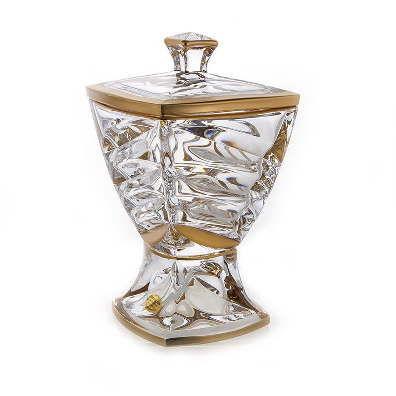 Доза 24,5см.факет матовая1. Страна: Чехия Бренд: Union Glass Коллекция: Факет Материал: Стекло Цвет: Прозрачный с золотом