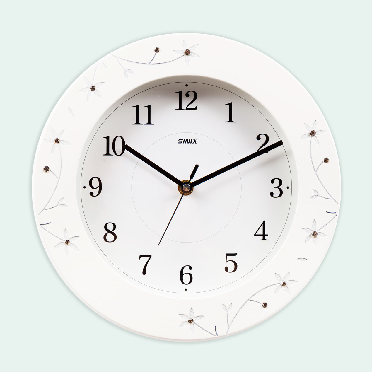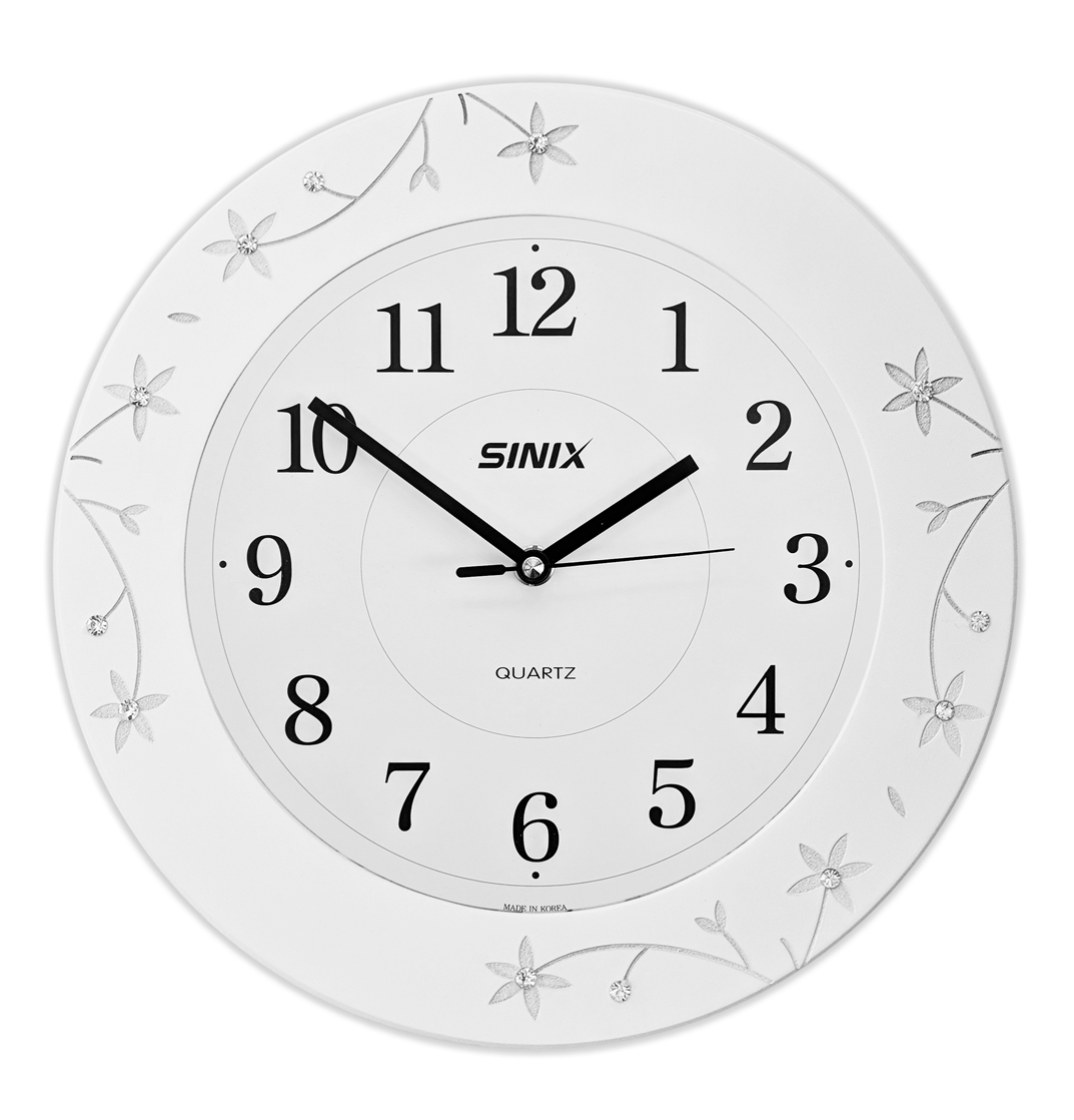 Настенные часы 27см, круглые, плавный ход sinix 5097w. Классические часы нежного цвета "слоновой кости" с ненавязчивым узором цветов и редкими вкраплениями страз понравятся как строгим любителям классики, так и приверженцам европейского стиля. Размеры, мм 265x265x50 мм. Материал MDF Форма Круглые Механизм Плавного хода Циферблат Арабский Цвет корпуса Белый Предназначение Для дома Особенности Настенные
