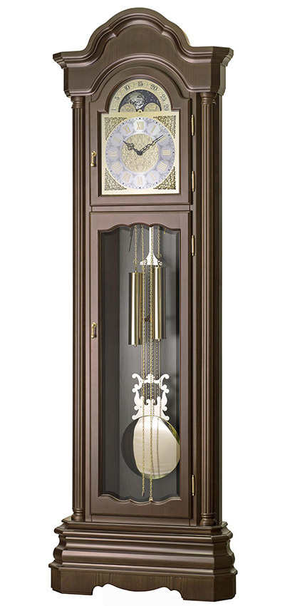 Немецкий механизм Hermle - цепной подвес гирь, 8-дневный запас хода, бой каждые 1/2 часа и в ровный час, с возможностью ручного отключения.