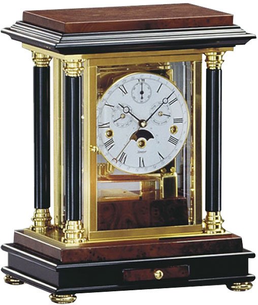 Часы настольные kieninger 1246-82-02. Настольные часы Kieninger 1246-82-02 Настольные часы механические заводные в корпусе из полированной латуни и орехового дерева с ящичком для ключа, с хрустальными стеклами, многофункциональный циферблат с индикаторами месяц, день недели , дата, секундным циферблатом и лунным календарем. Имеют 3-и мелодии и функцию автоматического отключения мелодии и боя на ночь с 22. 00 до 7. 00ч, Латунный корпус с вставками из полированного ореха, Черные колонны с декоративной отделкой латунью, 2 дверцы, ящик для ключа, Циферблат белый, римские цифры с секундной стрелкой, число, день недели, месяц, Лунный календарь. Ночной режим автоматическое отключение мелодии c 22. 00 до 7. 15 (патент Kieninger) Бой 3 мелодии (Westminster, St. Michaels, Whittington) каждые 15 минут Сделано в Германии Механизм: J0221-MK Полированный, бой 4/4, спусковой механизм (11 камней), три мелодии (Westminster, St. Michael, Whittington), 8-ми стержневой гонг, реальные секунды, мультифункциональный циферблат, постоянное ночное отключение мелодии и боя с 22. 00 до 07. 15. Материал корпуса латунь и орех Механизм механика Размер часов 34х25,5х18,5 см