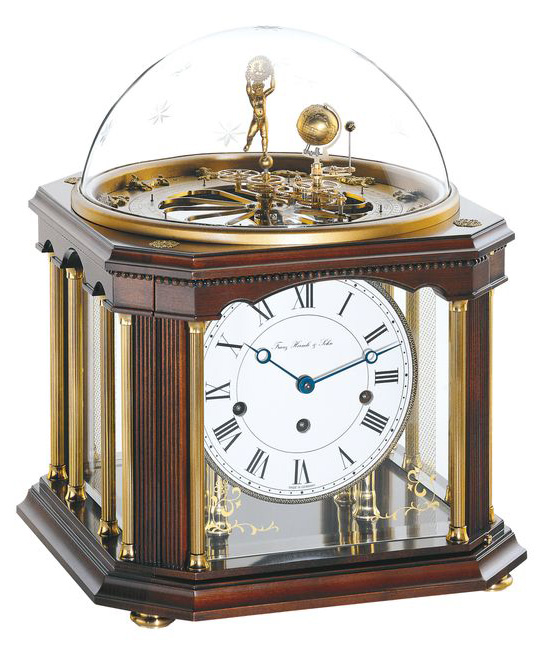 Часы настольные hermle 22948-q10352. Настольные часы Hermle 22948-Q10352 Цвет Q1 - Античный орех. Эмалированный циферблат с римскими цифрами и тёмно-синими стрелками Механизм 0352 - швейцарский анкерный ход. 11 камней. Запас хода - 8 дней. Теллурий. Бой каждые 15 минут с нарастанием длительности мелодии. Мелодия - Вестминстер Автоматическое и ручное отключение боя в ночное время Материал корпуса дерево Механизм механизм анкерный Размер часов 29х35х29 см
