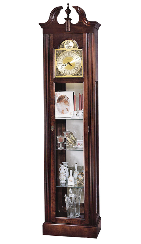 Часы напольные howard miller 610-614. НАПОЛЬНЫЕ ЧАСЫ HOWARD MILLER 610-614 CHERISH (ЧЕРИШ) Эти часы-витрина искусственно состарены. Они украшены элегантным фронтоном в виде «лебединых шей» с изящным навершием. Циферблат с гравировкой «Tempus Fugit» (в переводе с латыни «время бежит») украшен посеребренной окружностью и декоративными надсводными уголками. Зеркальная задняя стенка, три регулируемые по высоте стеклянные полки и одна деревянная полка в основании корпуса. Корпус изготовлен из отборных пород твердого дерева и покрыт шпоном. Тонирование и полировка корпуса выполнены в цвете Виндзорской Вишни (Windsor Cherry). Для дополнительной безопасности дверца часов запирается на замок. Цвет корпуса Коричневый Кварцевый механизм Подсветка корпуса или циферблата Механизм Кварцевый Страна производства США Элемент питания 1xAA (Батарейка не включена в поставку. ) Материал корпуса дерево Механизм кварцевый Размер часов 196 x 50 x 28 см