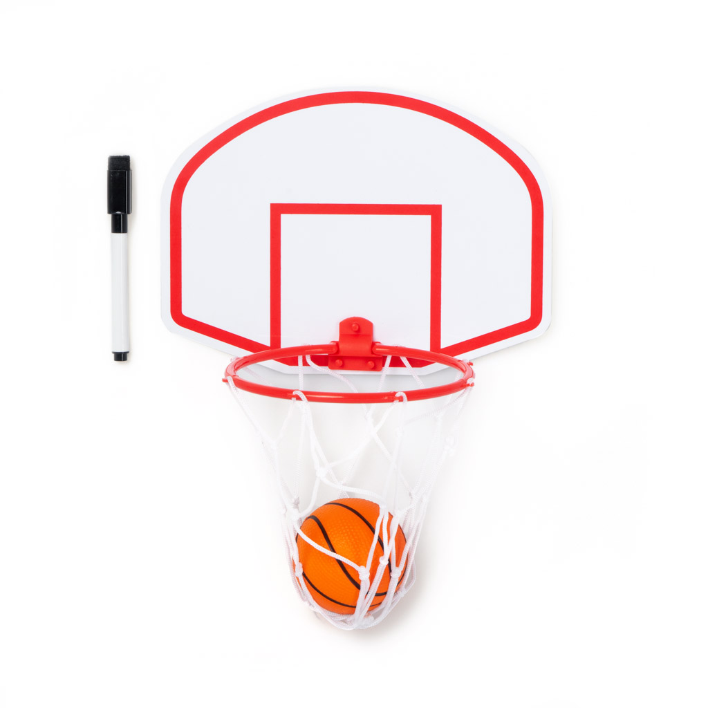 В комплект входит стираемый черный маркер, доска, имитирующая баскетбольное кольцо и мини баскетбольный мяч. Конструкция не требует сборки. С таким аксессуаром точно не получится забыть о записанных делах и параллельно соревноваться в точности бросков в кольцо.